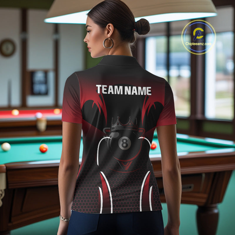 Black & Red 8 Ball Crown Women's Billiard Polo & 1/4 Zip Shirt Custom Billiard Team Jersey NYN2344