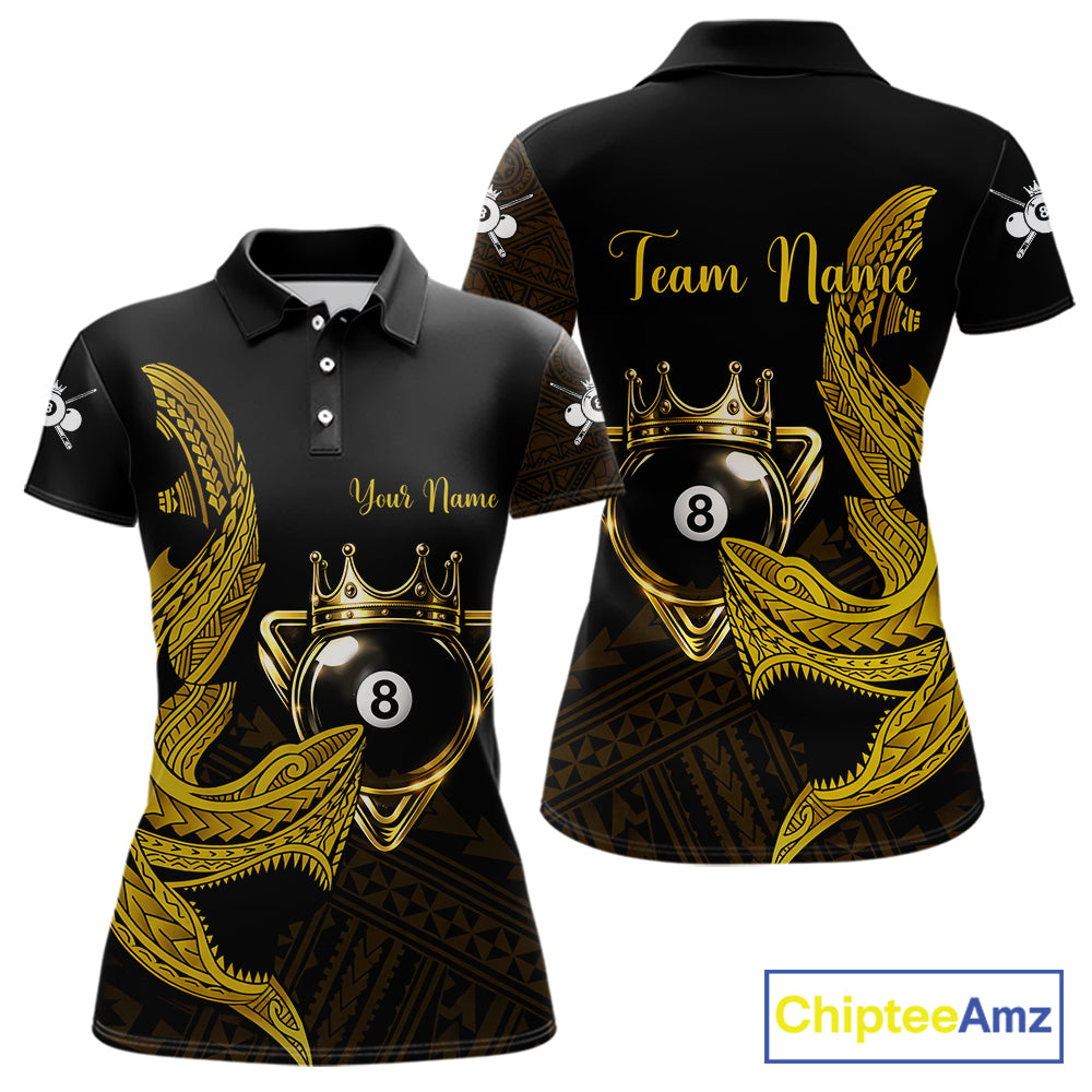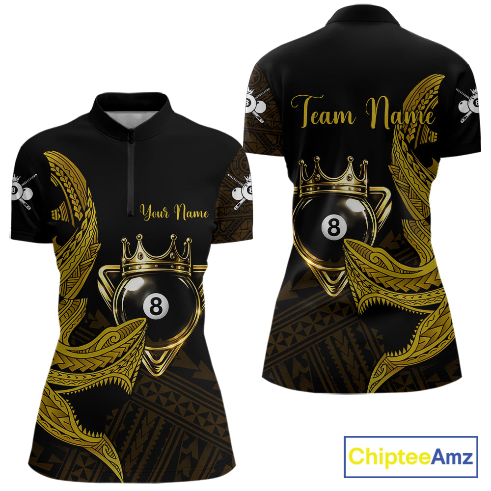 Gold 8 Ball Crown Women's Billiard Polo & 1/4 Zip Shirt Custom Tribal Billiard Attire Gifts NYN2345
