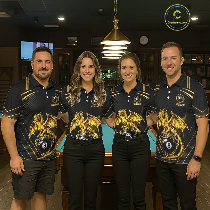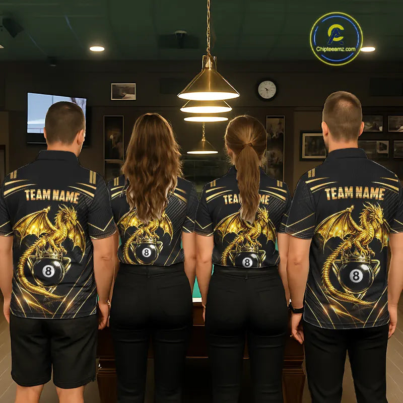 Black & Gold 8 Ball Crown Women's Billiard Team Shirt Custom Dragon Pool Billiard Jerseys NYN2348