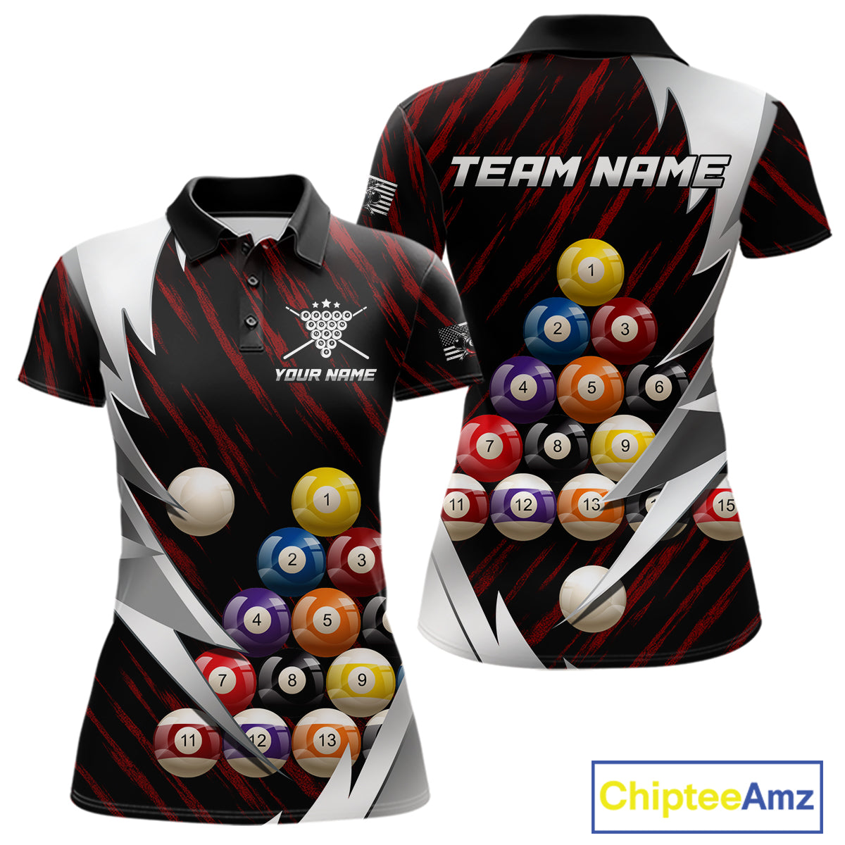 Red And Silver Pool Balls Billiard Team Polo & 1/4-Zip Shirt For Women Custom Billiard Apparel NYN2375