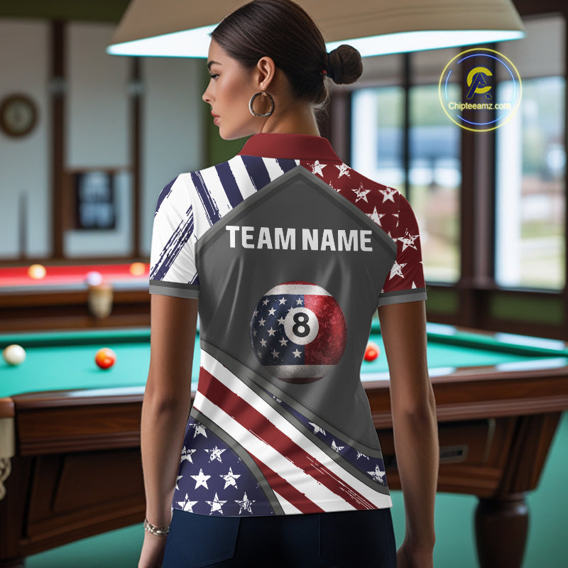 Patrioitc 8 Ball Pool Women Billiard Polo & 1/4-Zip Shirt Personalized Billiard Team Jersey NYN2376