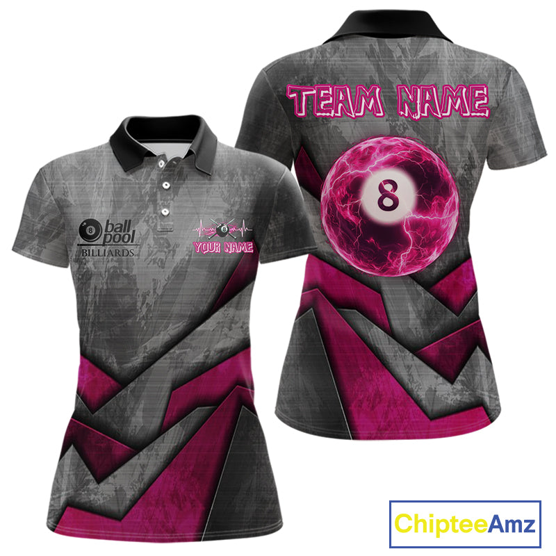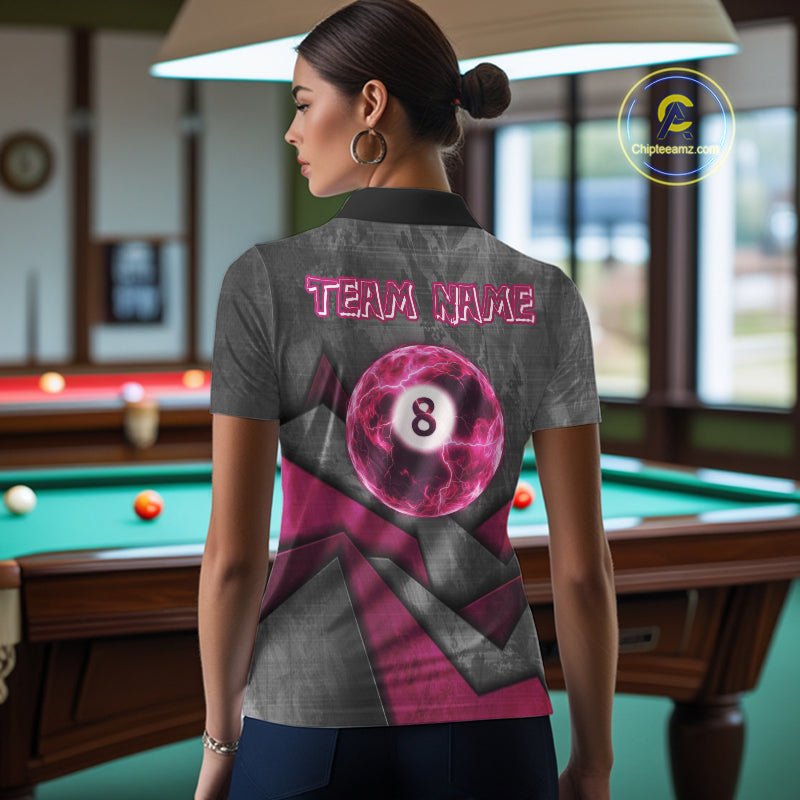 Ball Pool Billiard Polo & 1/4-Zip Shirt For Women Custom Light Pink 8 Ball Billiard Team Attire NYN2385