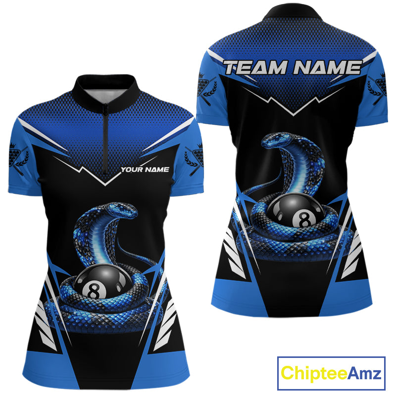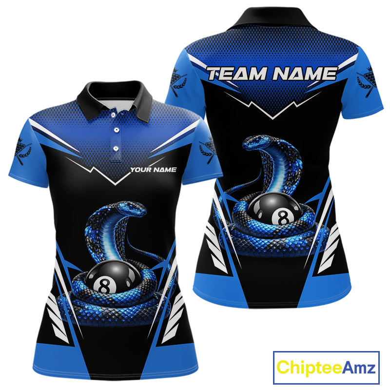 Cobra Balls Billiard Polo & 1/4-Zip Shirt For Women  Custom 8 Ball Pool Billiard Attire|Blue NYN2393