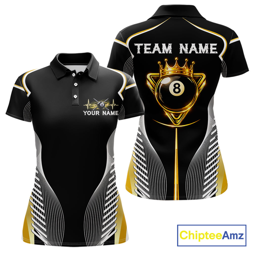 Black & Gold 8 Ball Pool Crown Women Billiard Team Shirt Custom Billiards Balls & Cue Gifts NYN2394