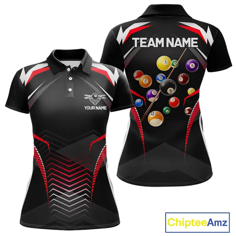 Black & Red Ball Pool Team Shirts Women's Billiard Polo & 1/4-Zip Personalized Billiard Gifts NYN2396