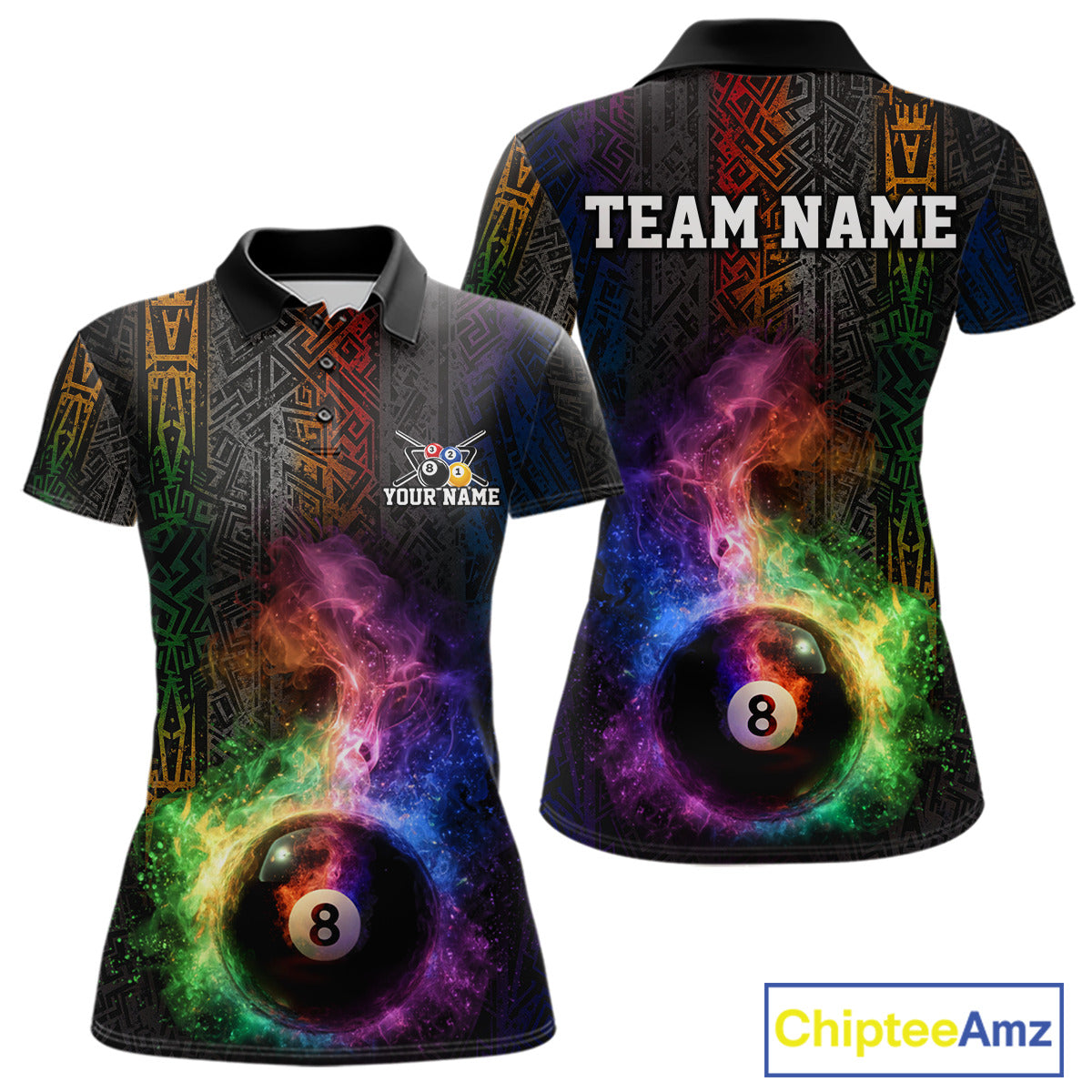 Tribal Colorful Smoke 8 Ball Pool Team Shirt Custom Women Billiards Balls Polo & 1/4-Zip Attire NYN2398