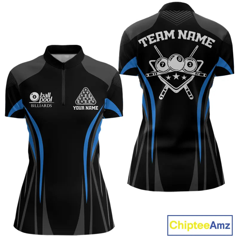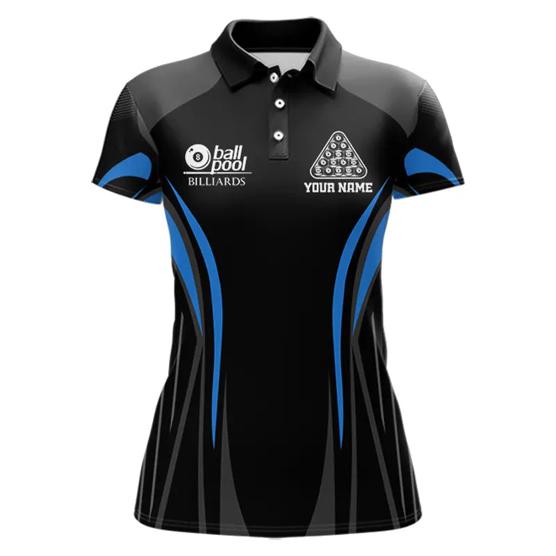 Black And Blue 8 Ball Pool Women Billiard Polo & 1/4-Zip Shirt Custom Pool Team Billiard Shirts NYN2401