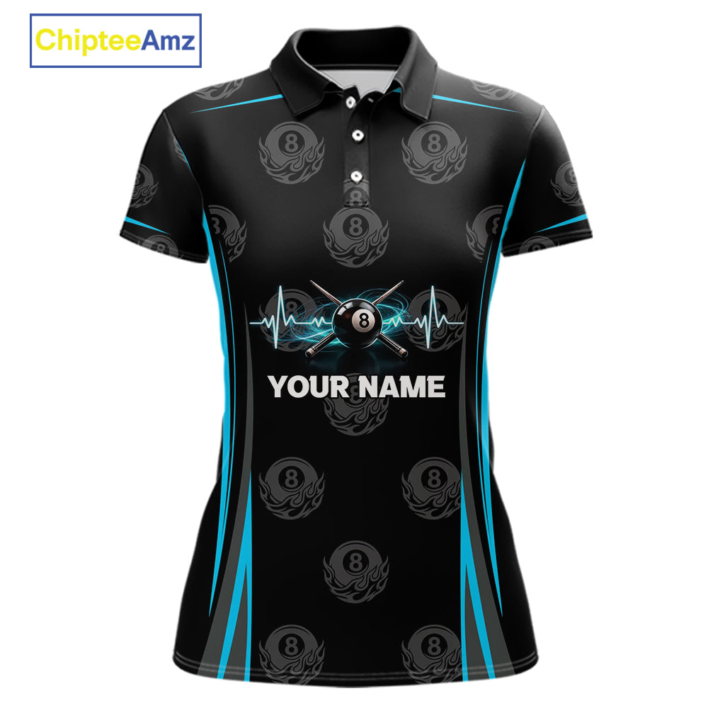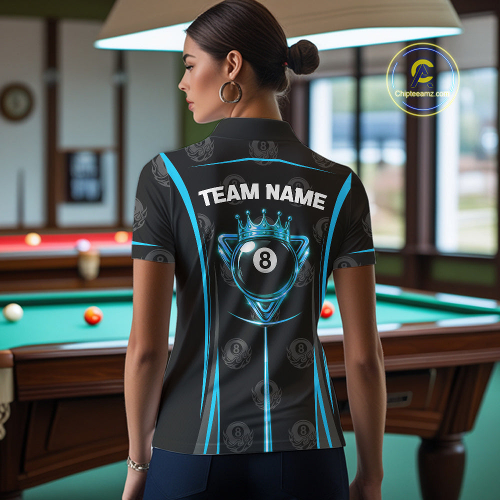 Black & Blue Crown 8 Ball Pool Billiard Apparel For Women Custom Billiard Team Shirt Designs NYN2407