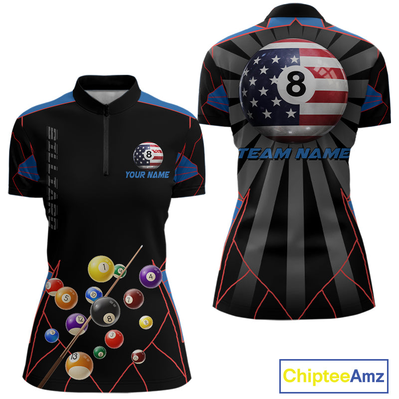 Custom US Flag 8 Ball Pool Team Shirt Personalized Women Billiard Polo & 1/4-Zip Attire Gifts NYN2417