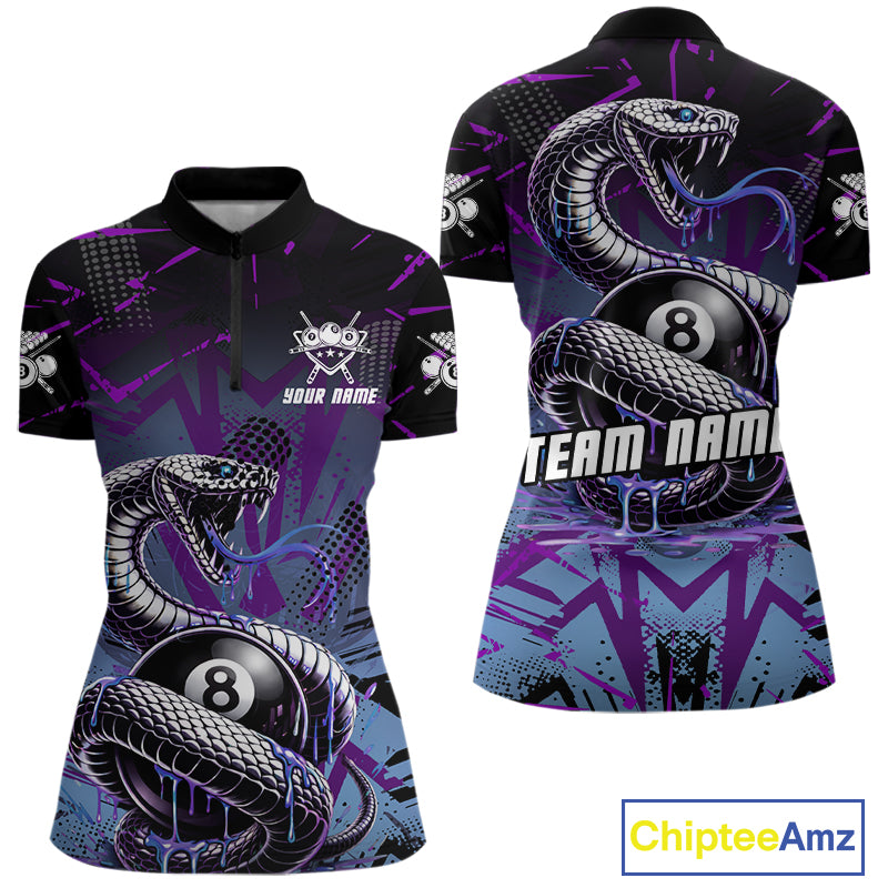 Dripping Cobra 8 Ball Pool Team Shirt Personalized Women Billiard Polo & 1/4-Zip Attire Gifts NYN2418