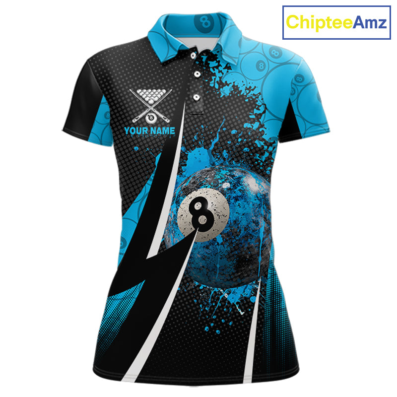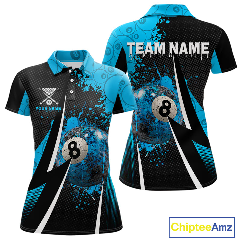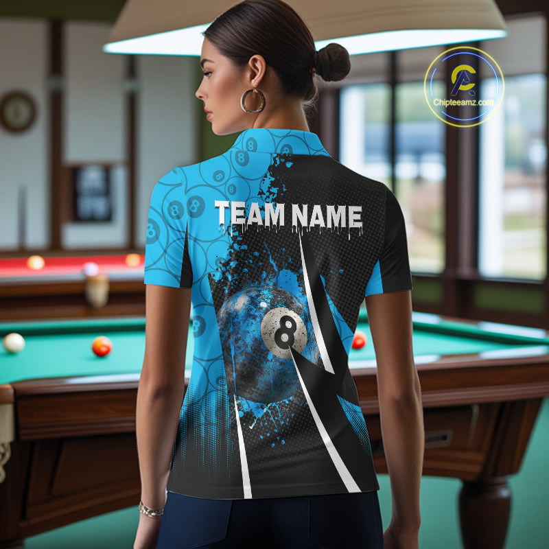Blue Grunge 8 Ball Pool Team Shirt Personalized Women Billiard Polo & 1/4-Zip Attire Gifts NYN2419