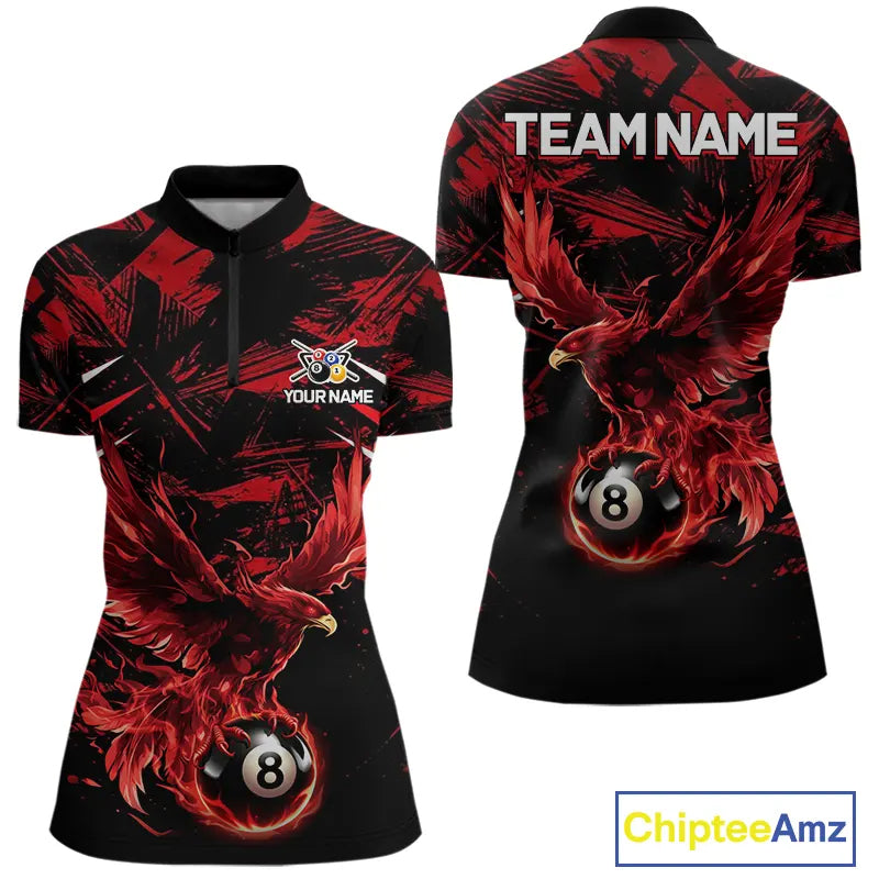 Eagle Red Flames 8 Ball Pool Polo & 1/4-Zip Shirt For Women Personalized Balls Billiard Gifts NYN2423