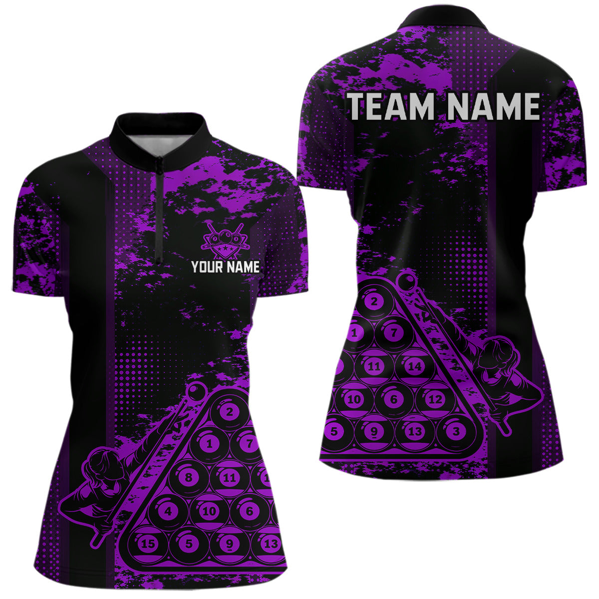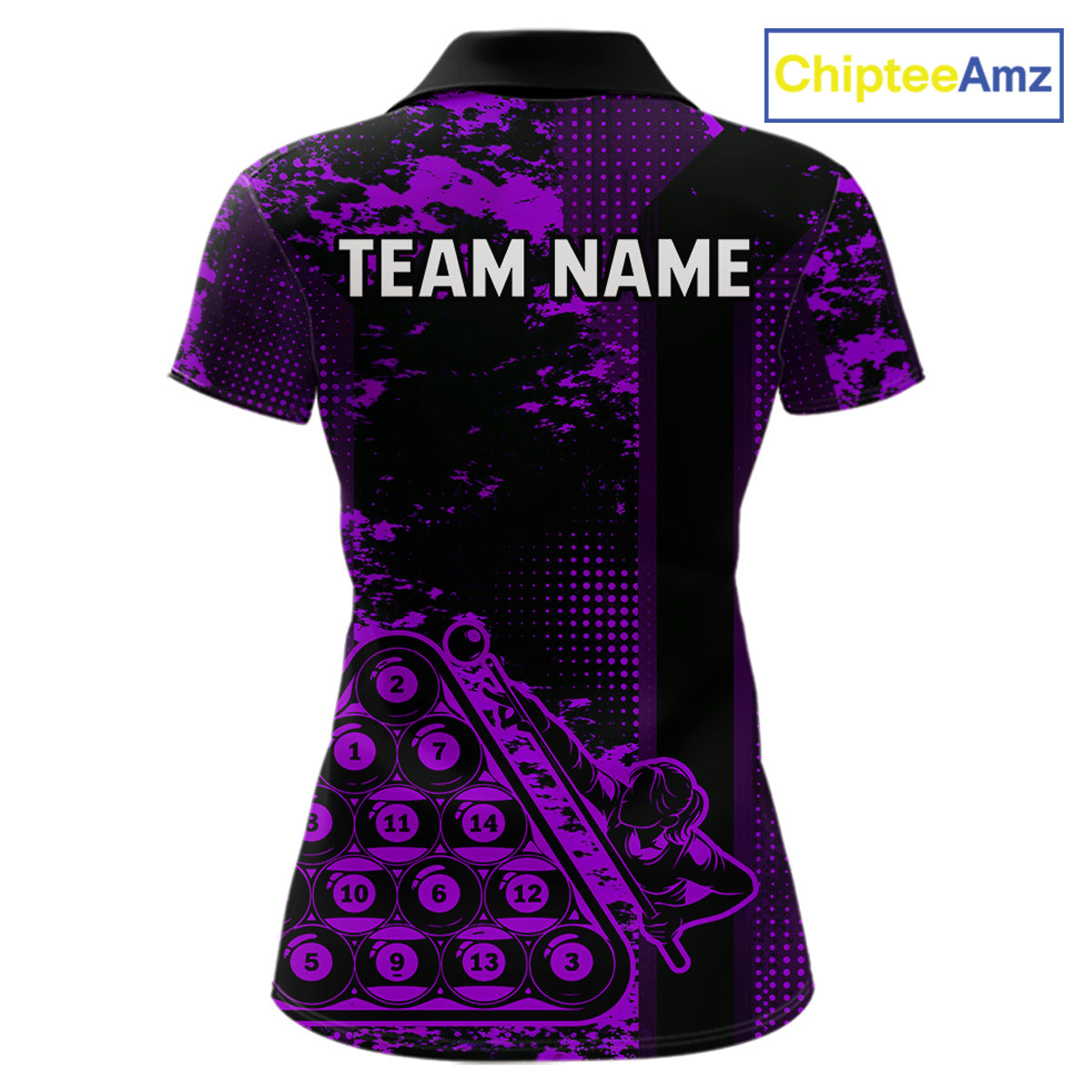 Purple Grunge Human Playing Ball Pool Women Polo & 1/4-Zip Shirt Custom Billiards Ball Jerseys NYN2431