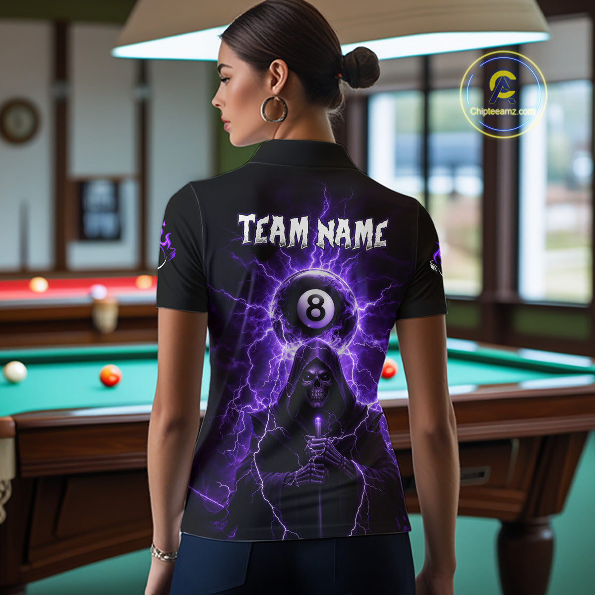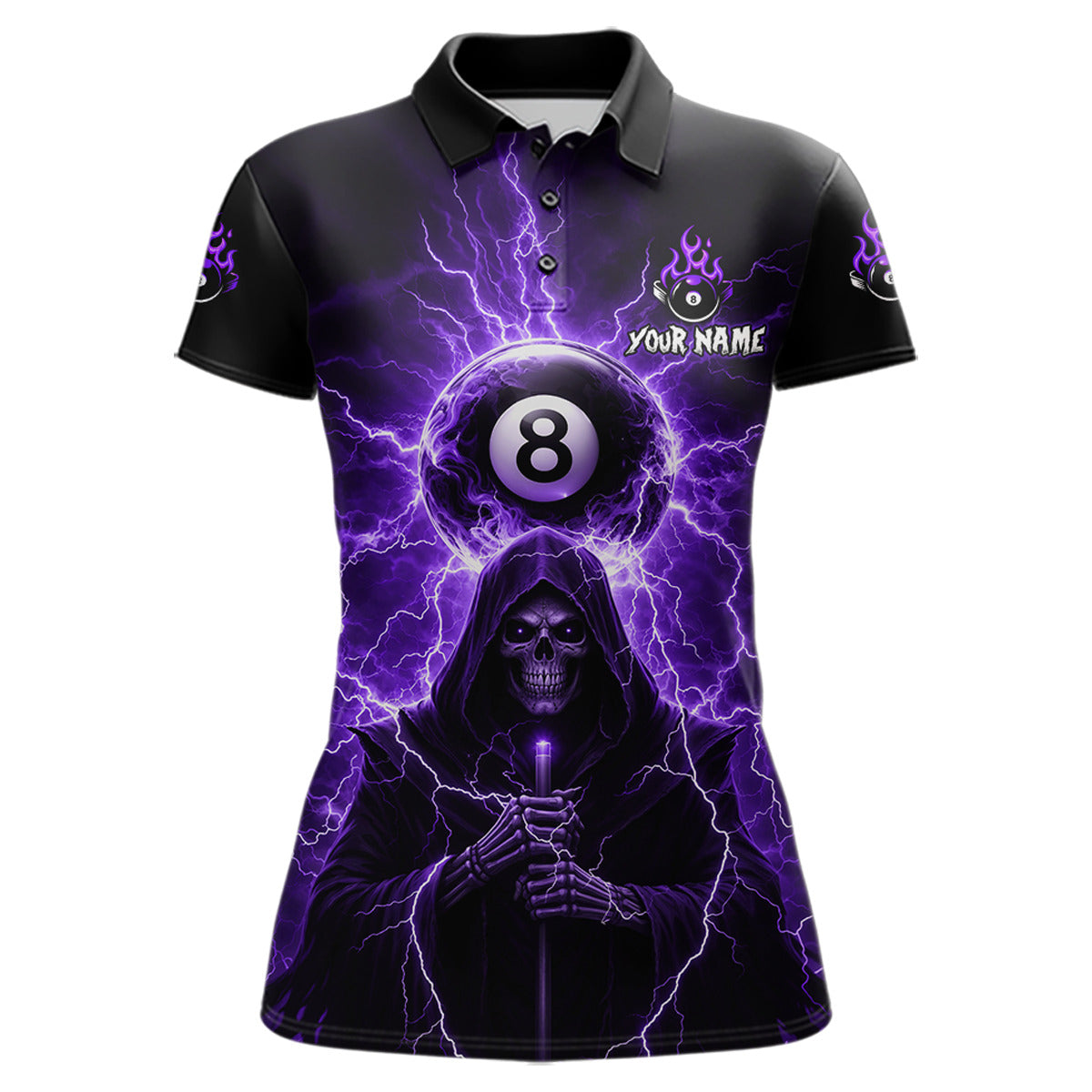 Grim Reaper Thunder Purple 8 Ball Pool Women Polo & 1/4-Zip Shirt Custom Billiards Ball Jerseys NYN2432
