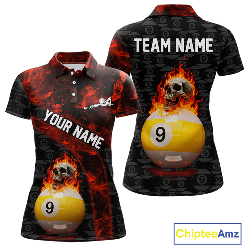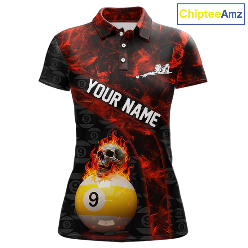 Fire Skull 9 Ball Pool Billiard Team Shirt For Women Custom Red Flames Billiard Ball & Cue Gifts NYN2437
