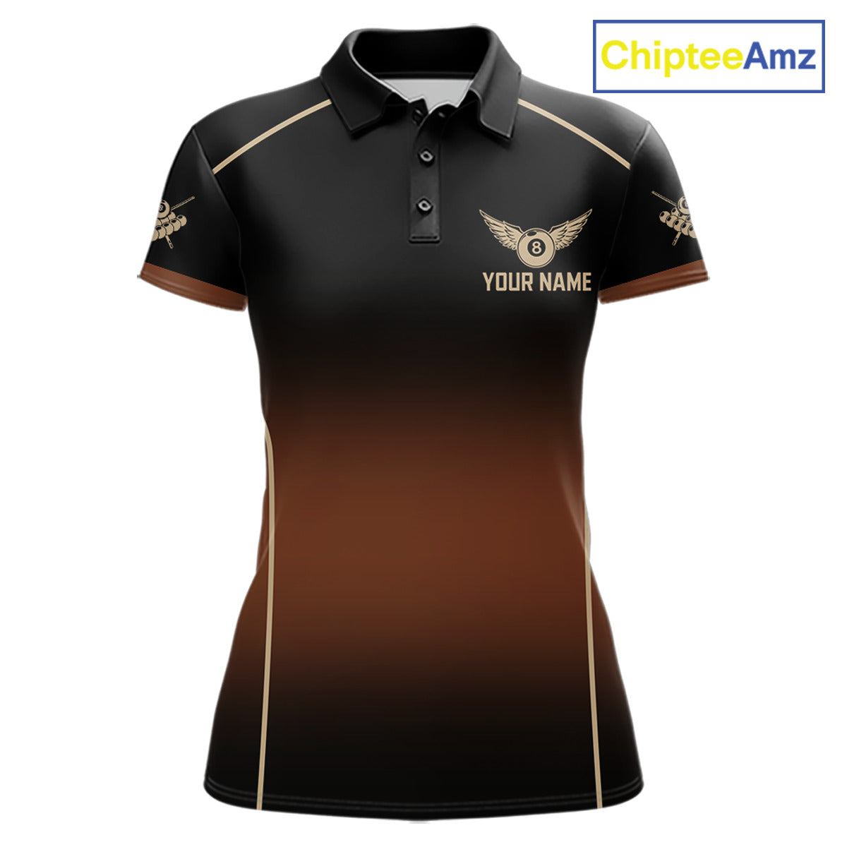 Black And Brown 8 Ball Pool Women Billiard Polo & 1/4-Zip Shirt Custom Billiard Balls Jerseys NYN2442