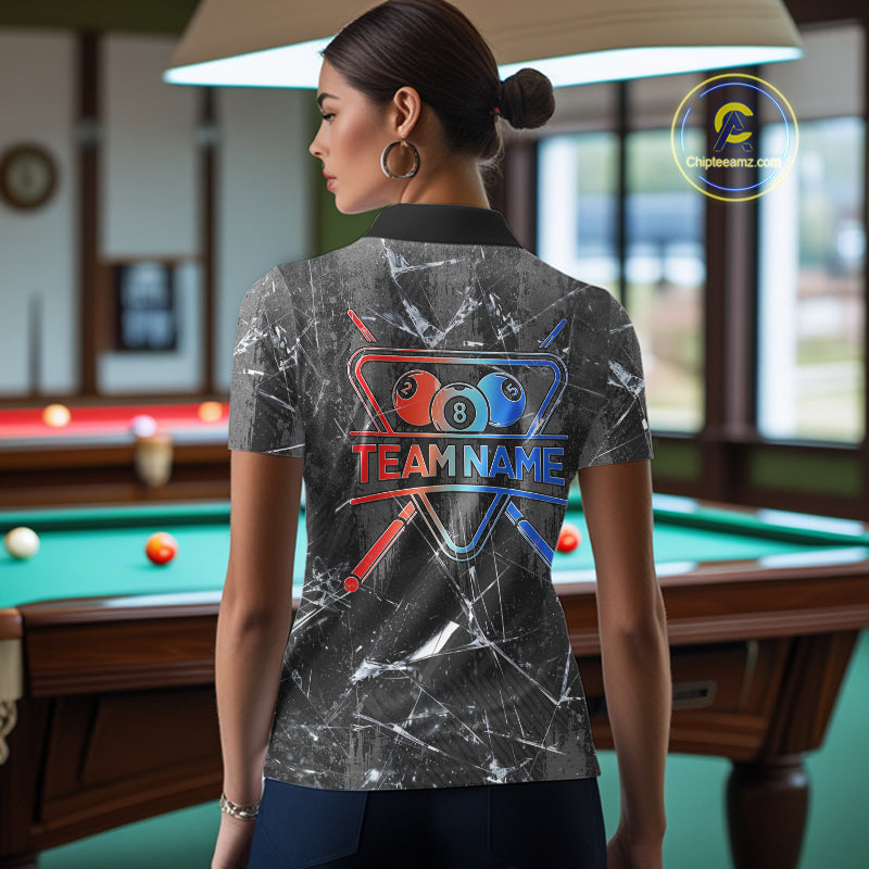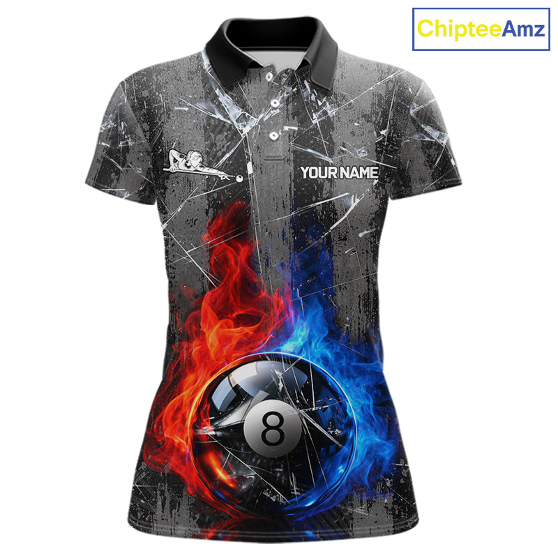Glass Crack 8 Ball Pool Women Polo & 1/4-Zip Team Shirts Custom Fire Flame Billiards Ball Apparel NYN2463