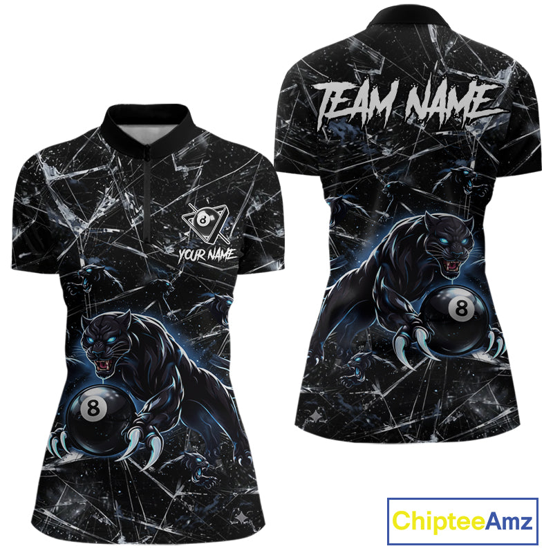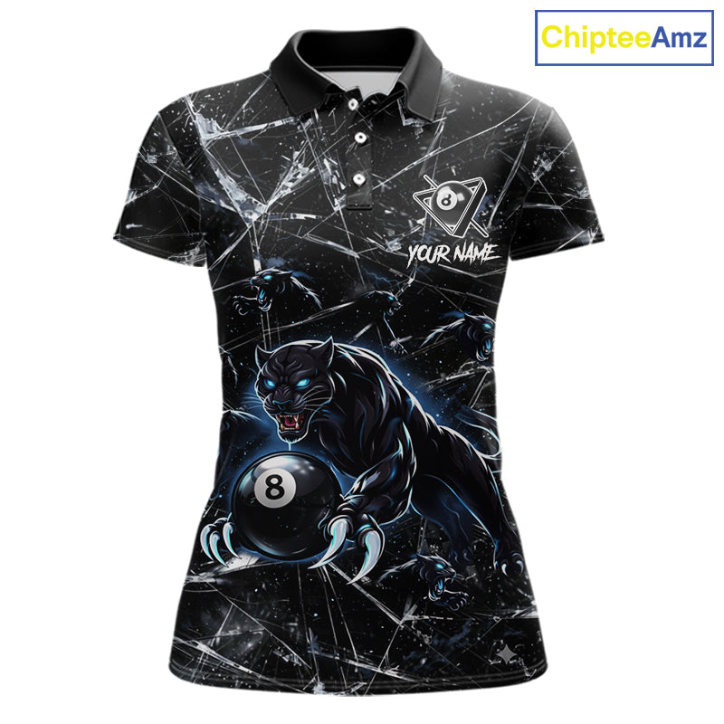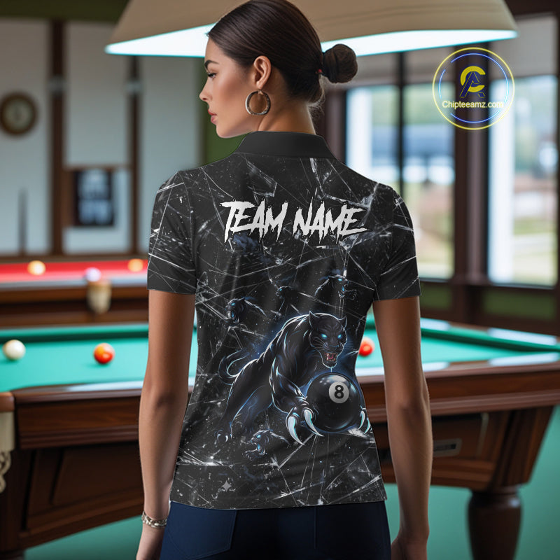 Multi-Panther Funny Glass Crack 8 Ball Pool Polo & 1/4-Zip Team Shirt For Women Custom Billiards Ball Apparel NYN2464