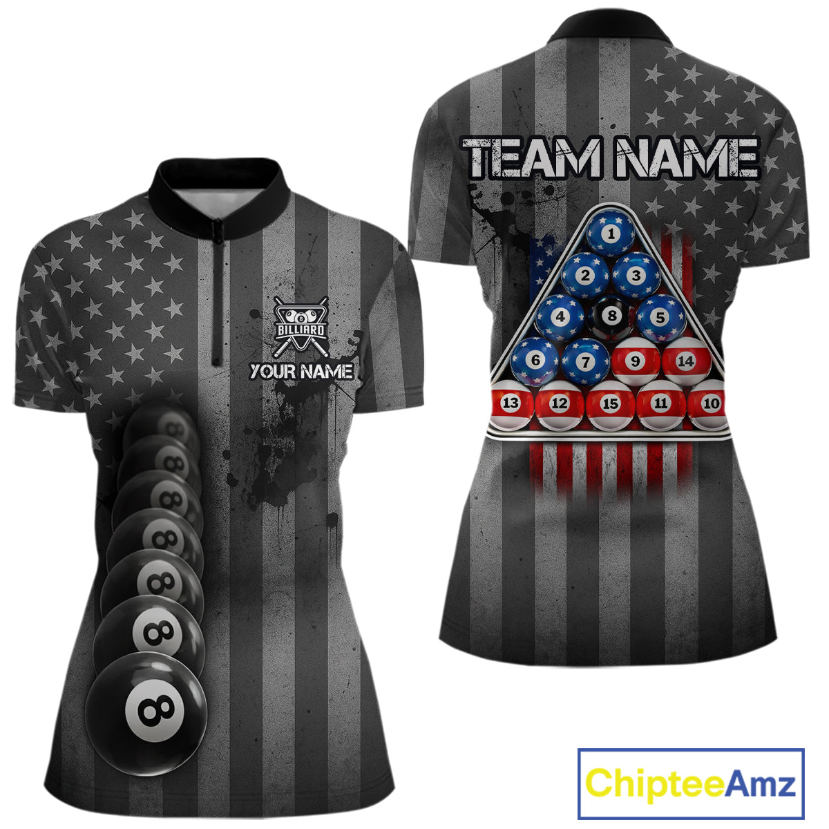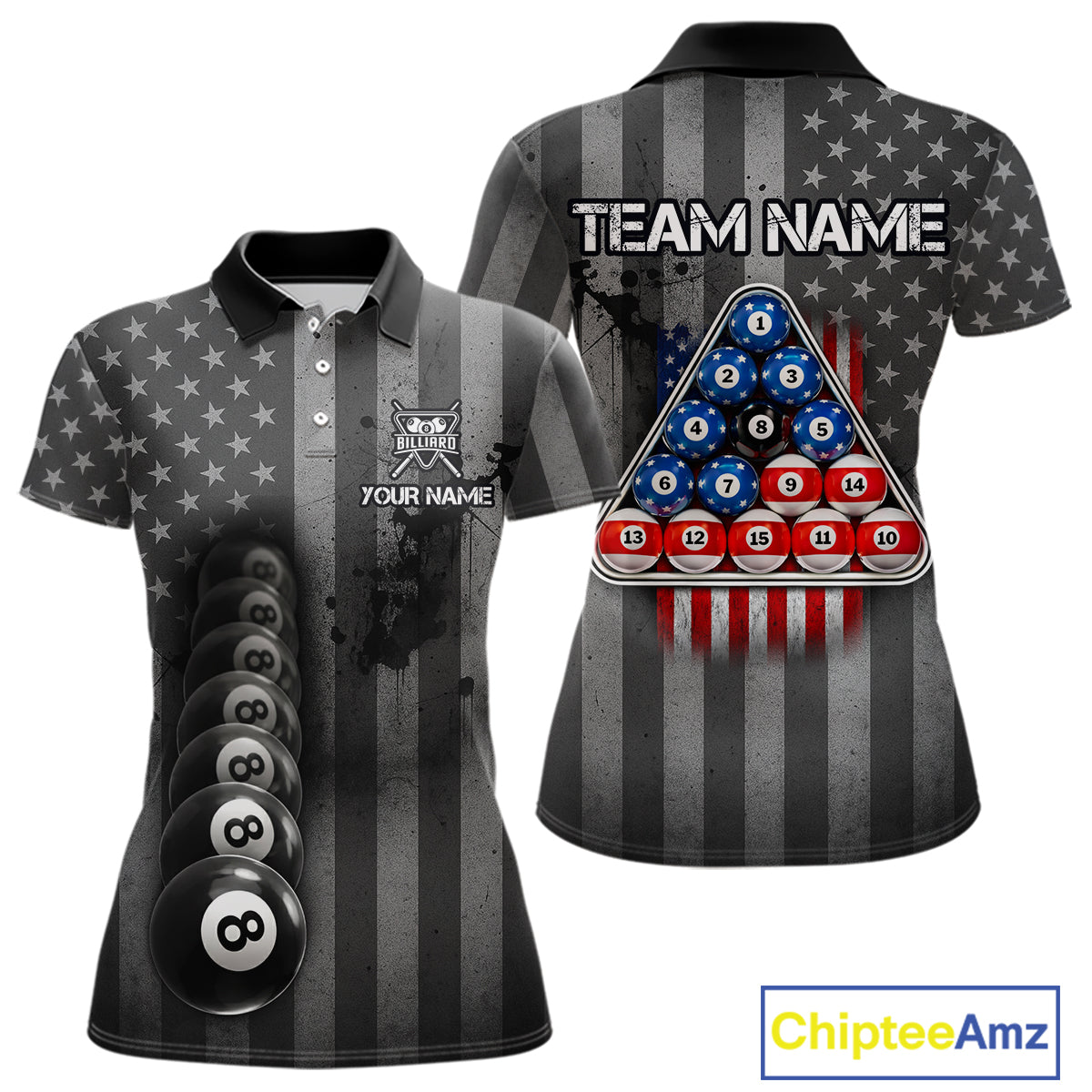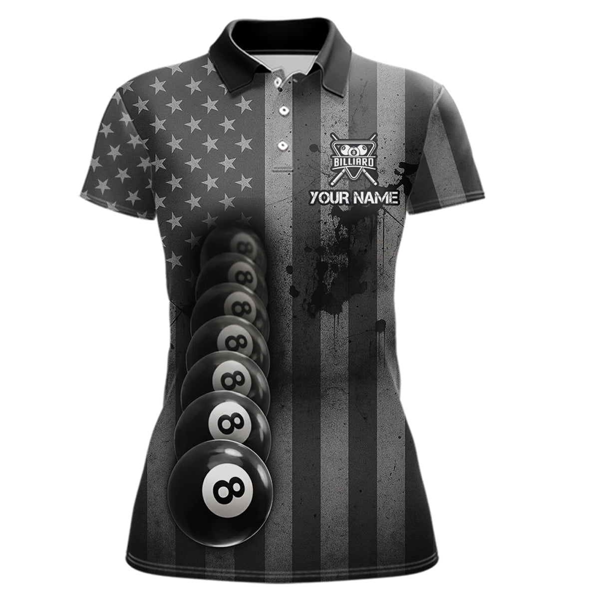 Grunge US Flag Blur 8 Ball Pool Billiard Team Shirt For Women Custom Patriotic Billiards Ball Attire NYN2470