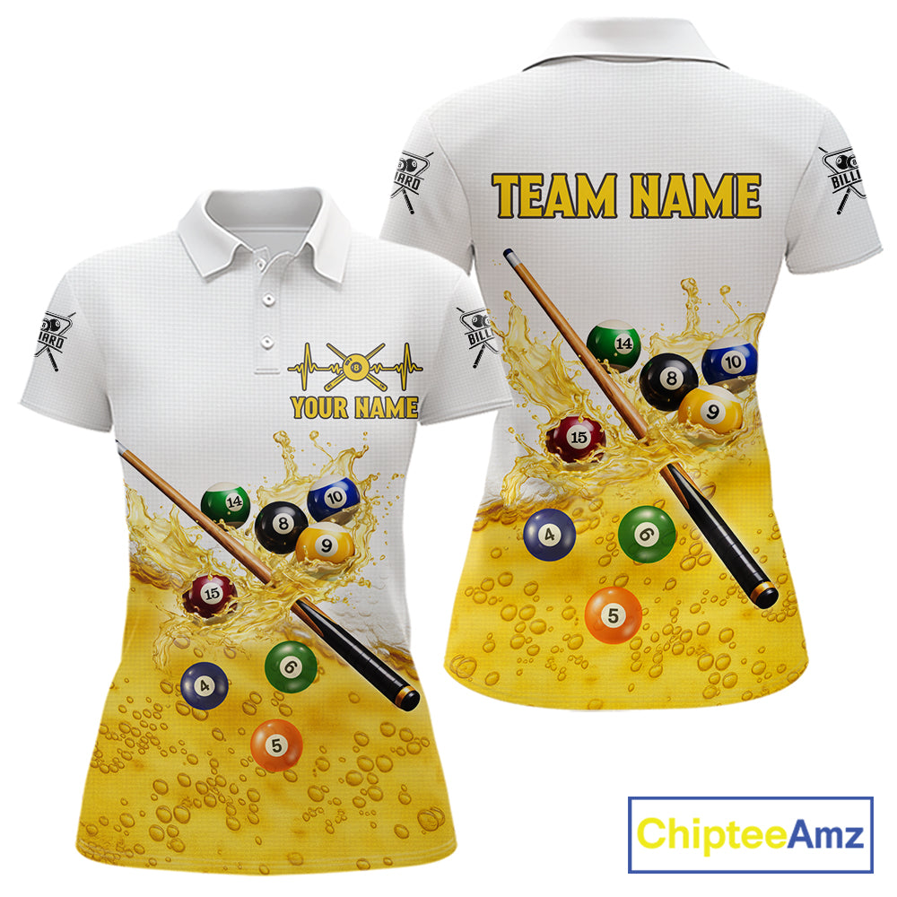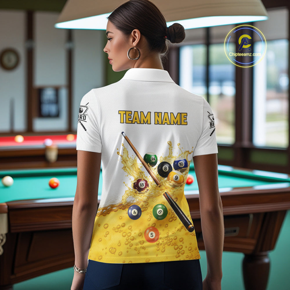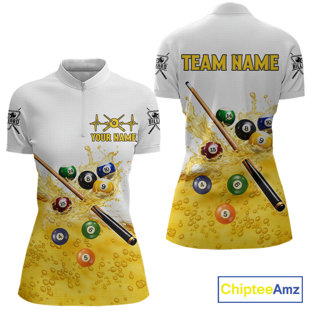 Funny Beer Play Pool Balls Billiard Team Shirt For Women Custom Billiard Polo & 1/4 Zip Attire NYN2474