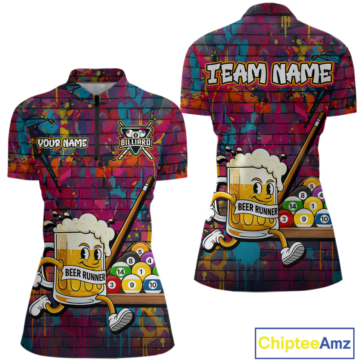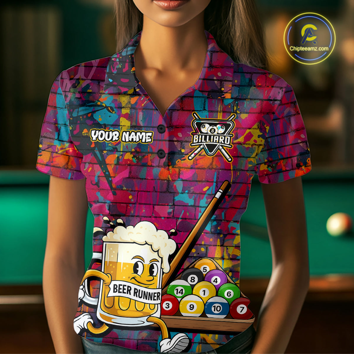 Funny Beer Play Pool 8 Ball Women's Billiard Team Shirt Custom Colorful Splatter Billiard Attire NYN2476