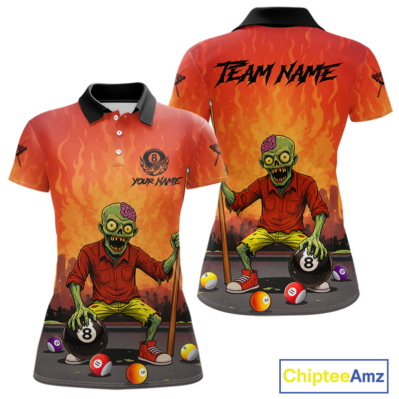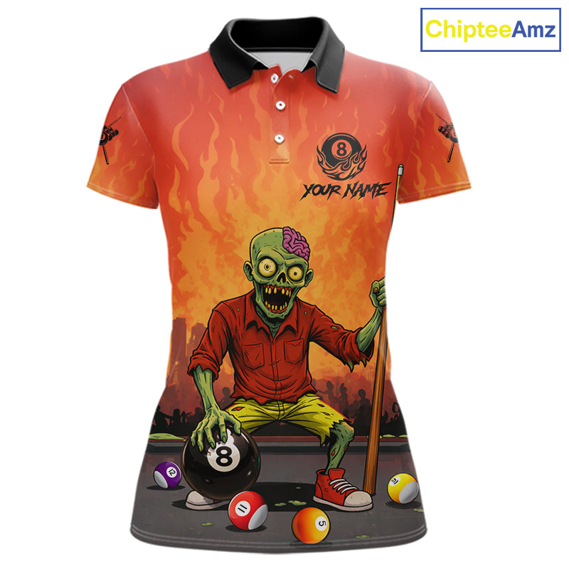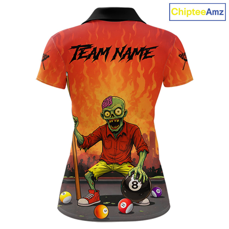 Skeleton Play 8 Ball Pool Women's Billiard Polo & 1/4 Zip Team Shirt Custom Funny Billiard Attire NYN2480