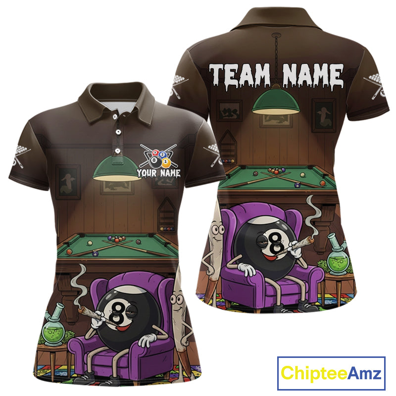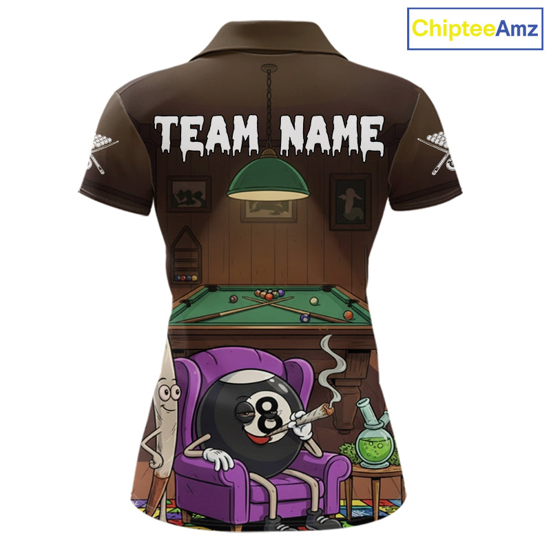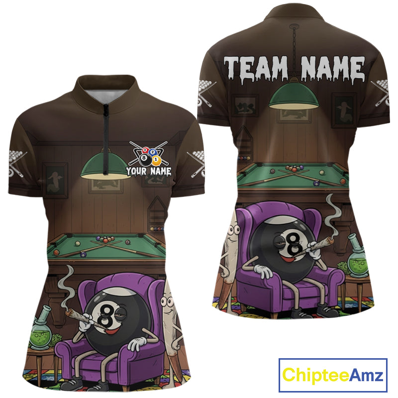Funny Pool 8 Ball Smoking Women's Billiard Team Shirt Custom Billiard Polo & 1/4 Zip Attire NYN2495