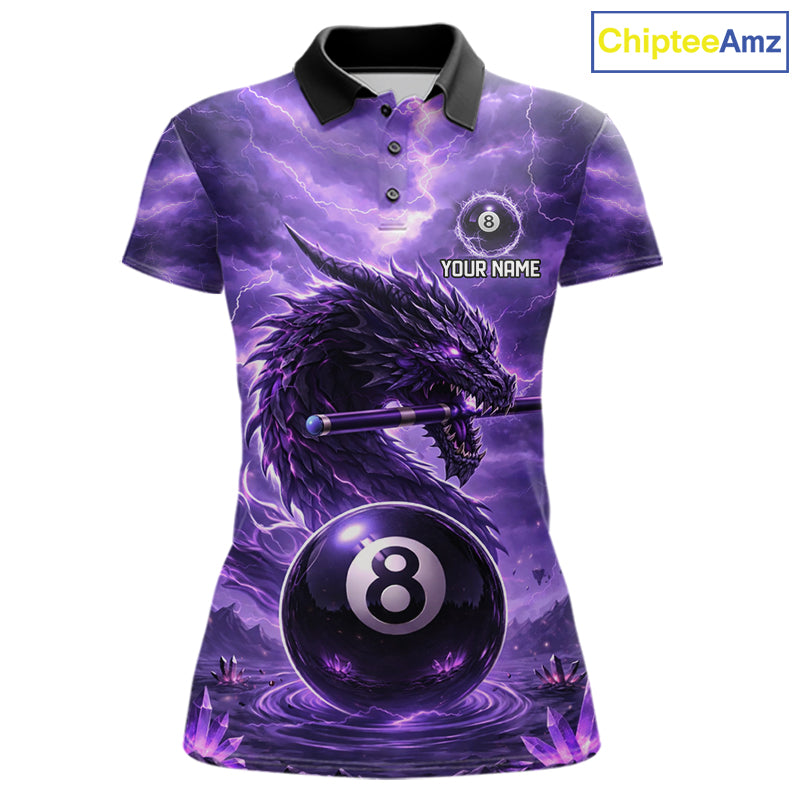 Dragon Thunder Purple Cue & Pool 8 Ball Women Billiard Shirt Custom Billiard Polo & 1/4-Zip Attire NYN2496