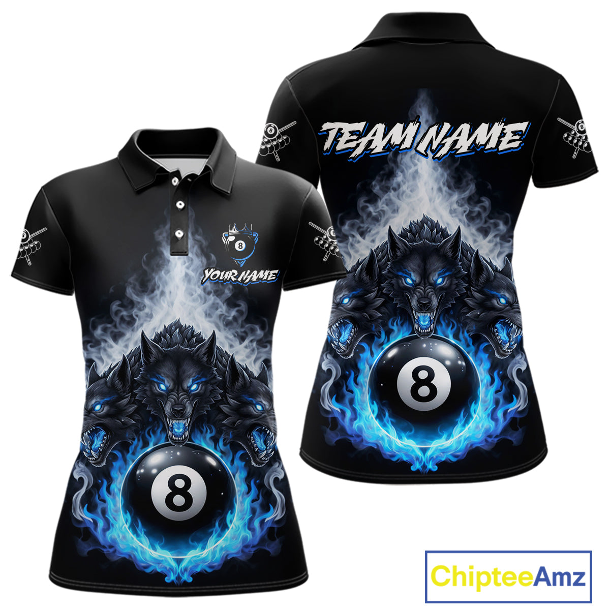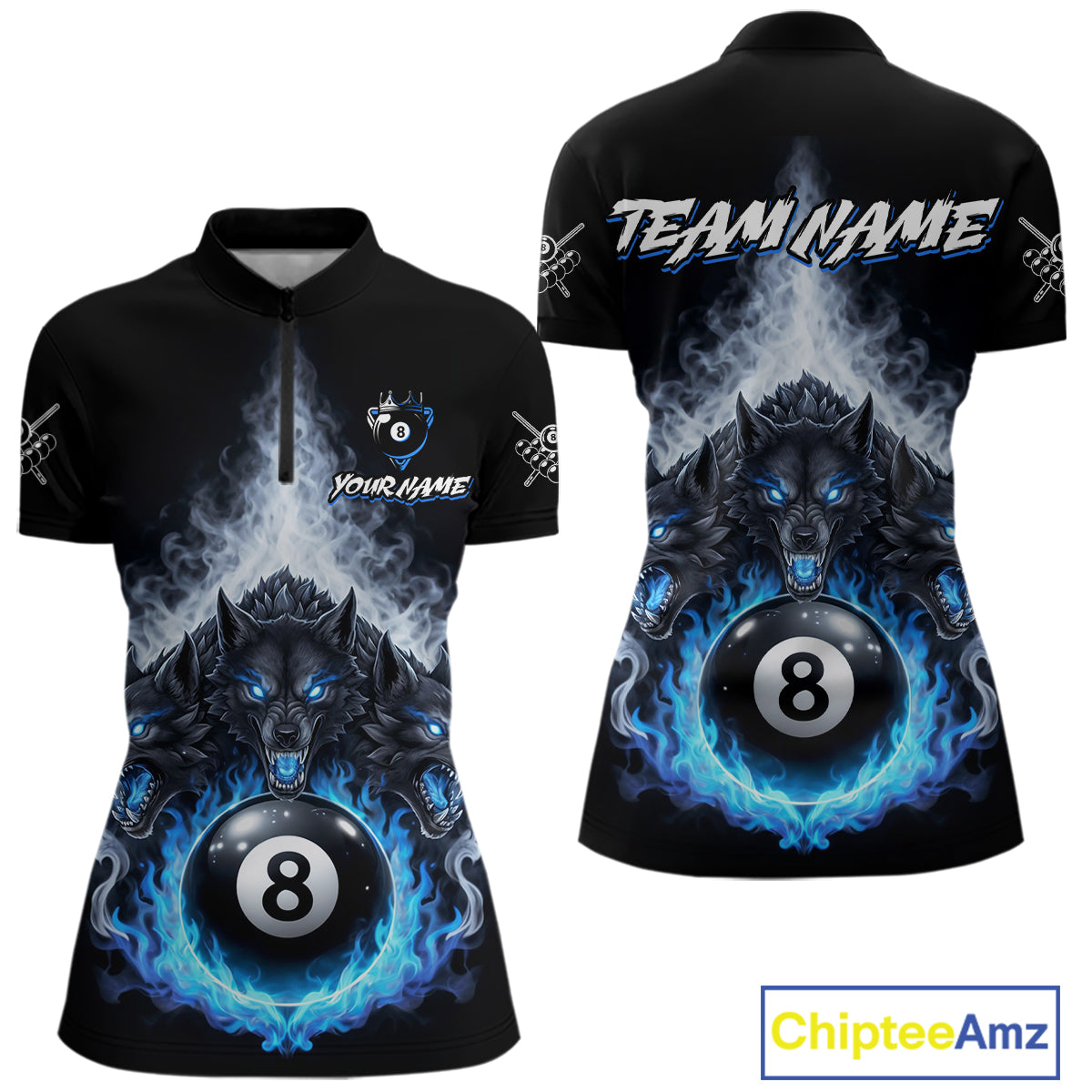 Custom Horror Wolfs Black Blue Smokes Pool 8 Ball Women's Billiard Team Shirt Billiard Attire NYN2503