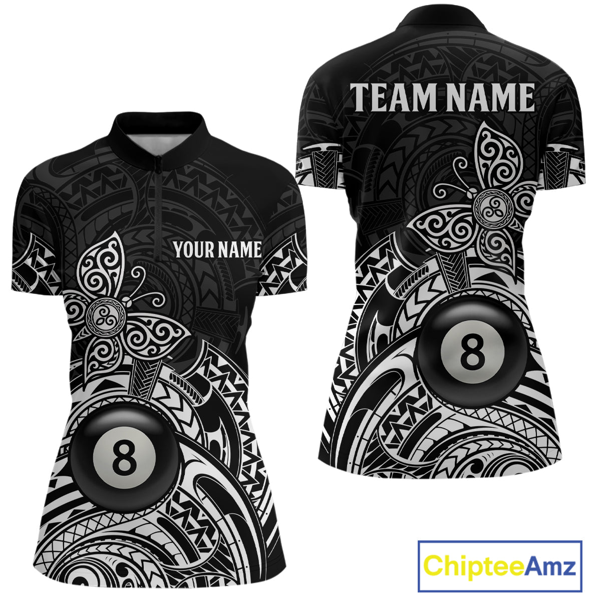 Custom White Black Tribal Butterfly Billiard Shirts For Women | 8 Ball Pool Team Jerseys TDM3987