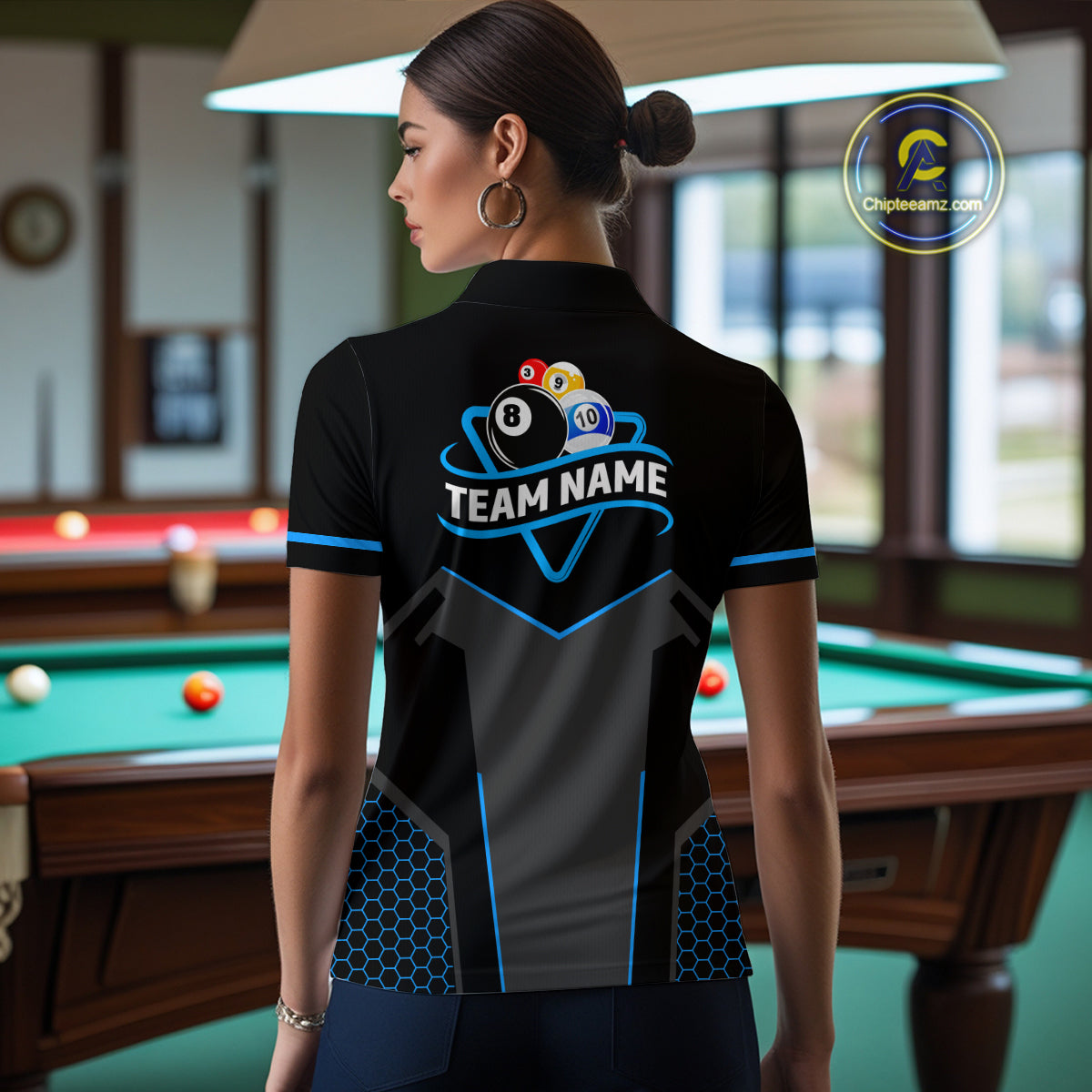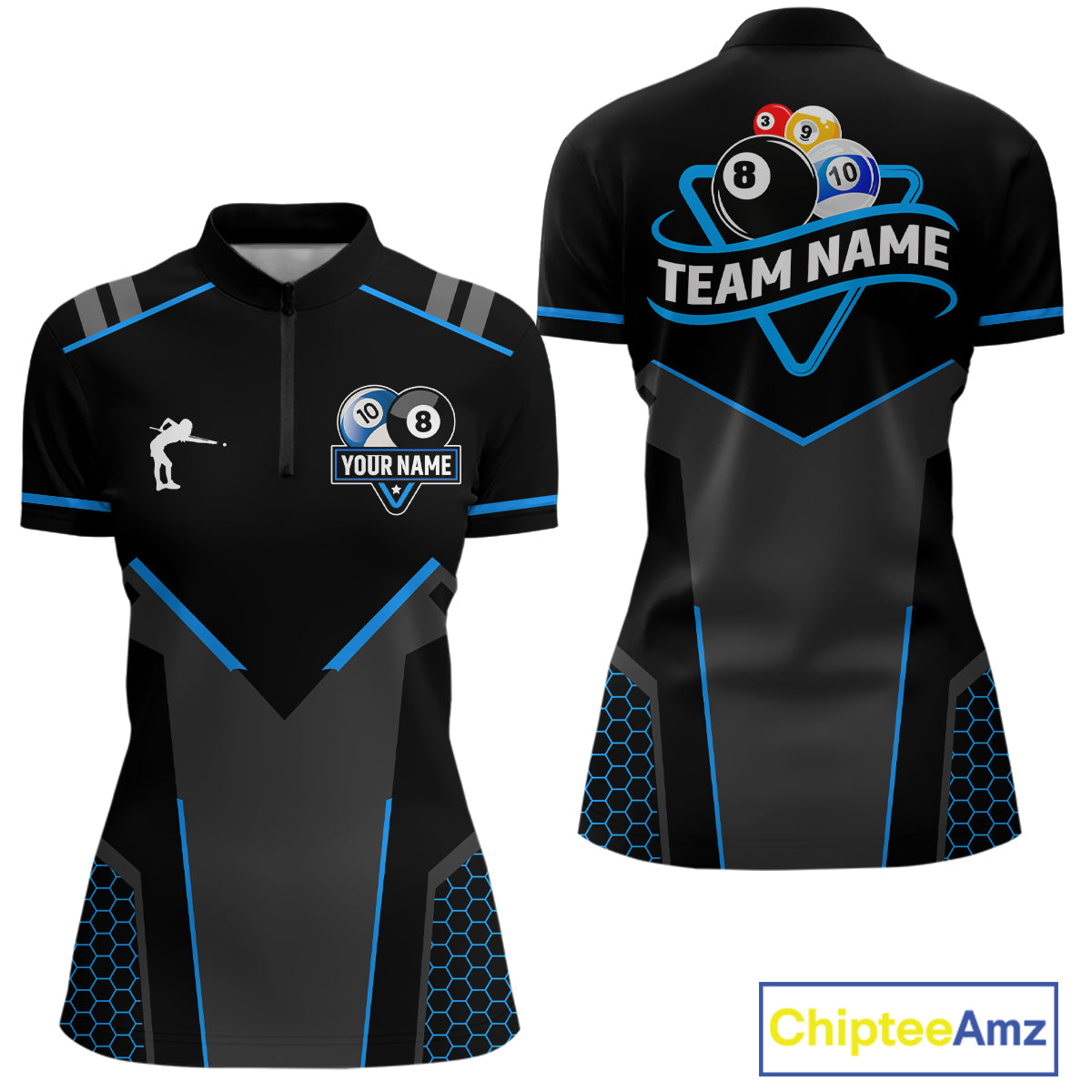 Personalized 8 Ball & 10 Ball Pool Billiard Polo, 1/4 Zip For Women Custom Team Billiard Jersey TDM4050