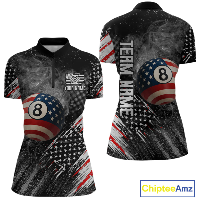 Personalized Grunge American Flag Women's Billiard Shirts Custom 8 Ball Pool Smoke Team Jerseys TDM4054