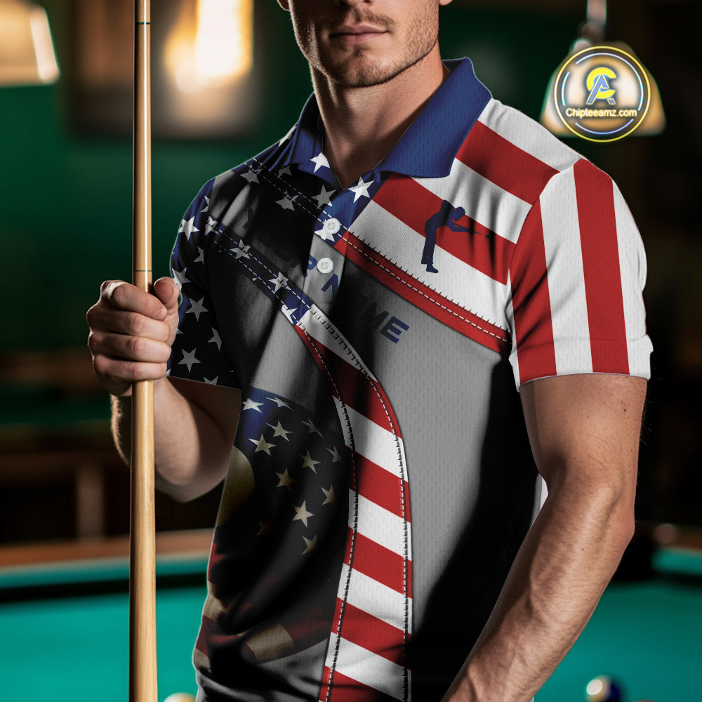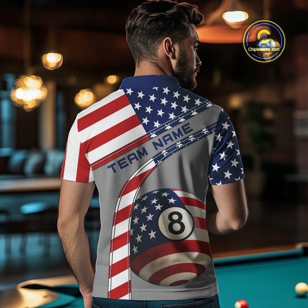 Custom Men's 8 Ball Billiard Shirts, American Flag Polo & 1/4 Zip Patriotic Pool Team Jerseys TDM4055