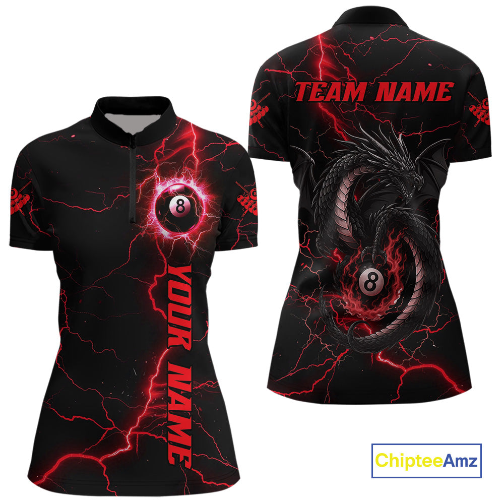 Black And Red 8 Ball Pool Lightning Custom Dragon Women's Billiard Shirts, Billiard Team Jerseys TDM4073