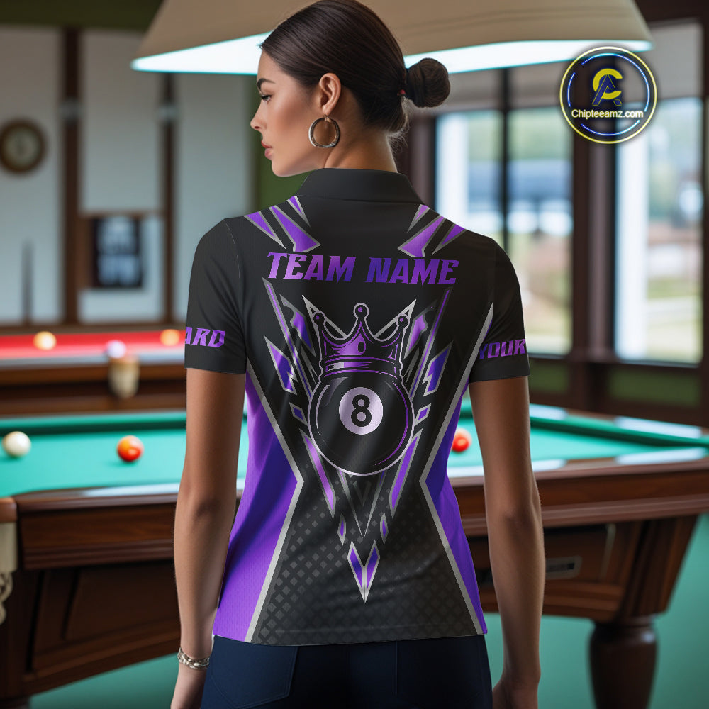 Customized 8 Ball Pool Crown Women Billiard Shirt, Black And Purple Billiard Team Shirt, Pool Jersey TDM4080