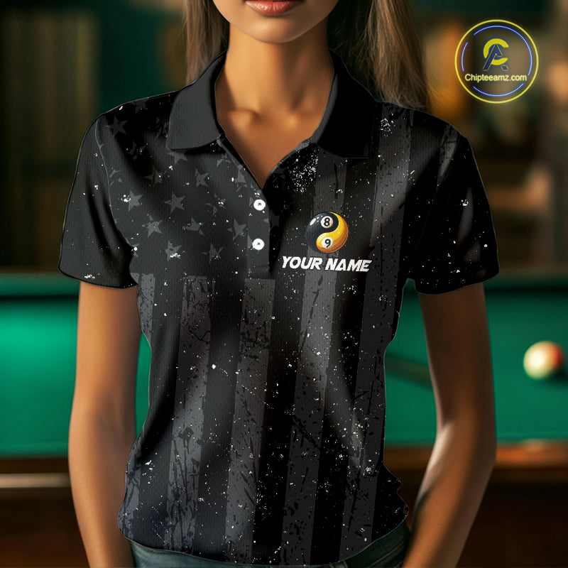 Black US Flag Ying And Yang 8 Ball & 9 Ball Custom Billiard Shirts For Women Funny Billiard Jerseys TDM4082