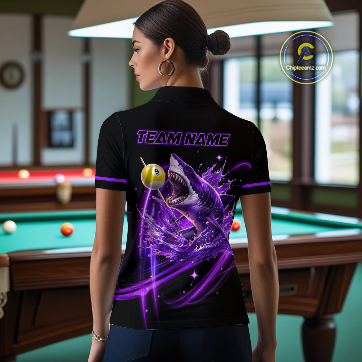 Purple 8 Ball & 9 Ball Pool Billiard Shark Polo & Quarter Zip For Women Custom Team Billiard Jerseys TDM4088