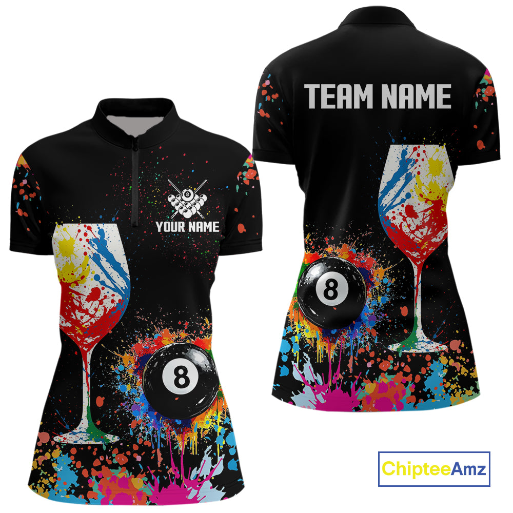 Personalized Colorful Splash 8 Ball Billiard Shirts For Women, Funny Wine Glass Custom Pool Jerseys TDM4100