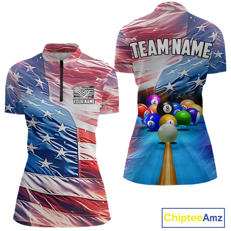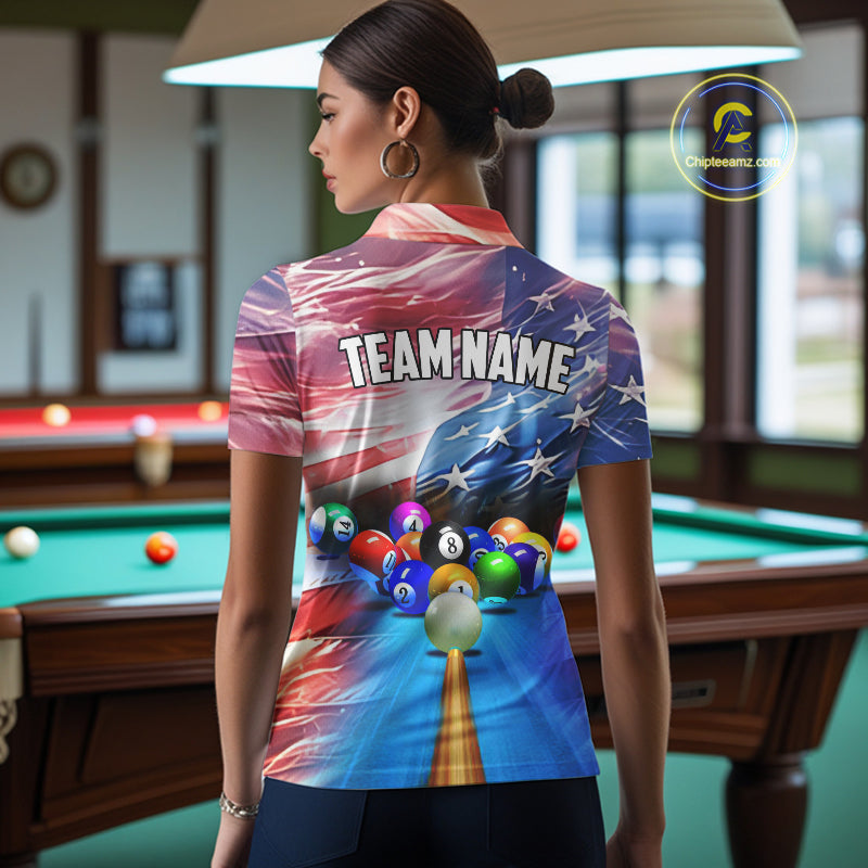 Personalized Glowing Patriotic American Flag 8 Ball Billiard Shirt For Women – Custom Pool Jersey TDM4117