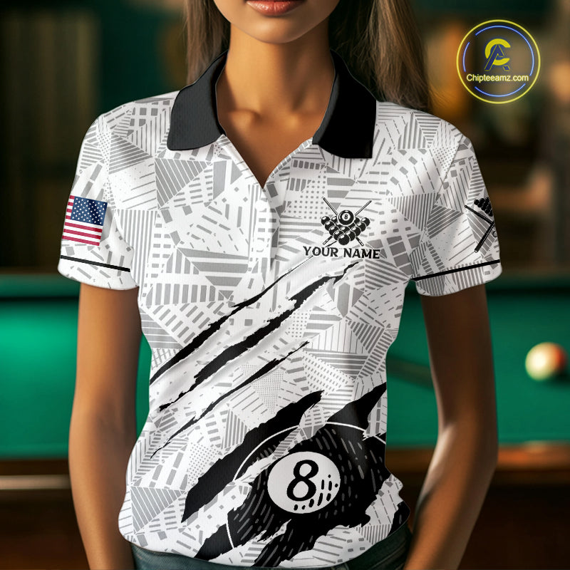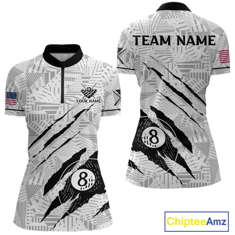 Personalized Funny Scratch 8 Ball Pool Billiard Polo, 1/4 Zip For Women Custom Team Billiard Jersey TDM4147