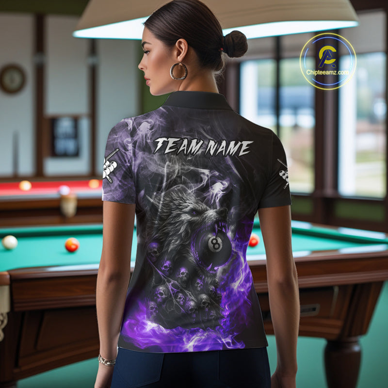 Personalized Purple 8 Ball Pool Wolf And Skull Billiard Shirt For Women, Smoke Billiard Team Jerseys TDM4159