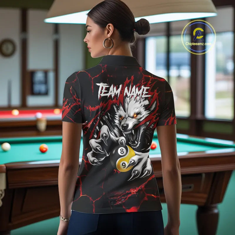 Personalized Wolf Yin-Yang 8 & 9 Ball Billiard Shirt For Women, Billiard Team Jersey Polo & 1/4 Zip TDM5470
