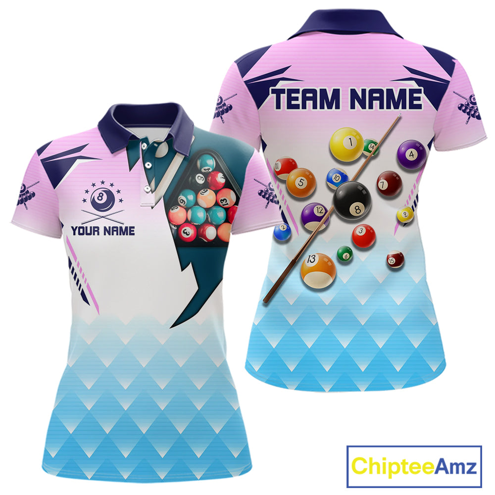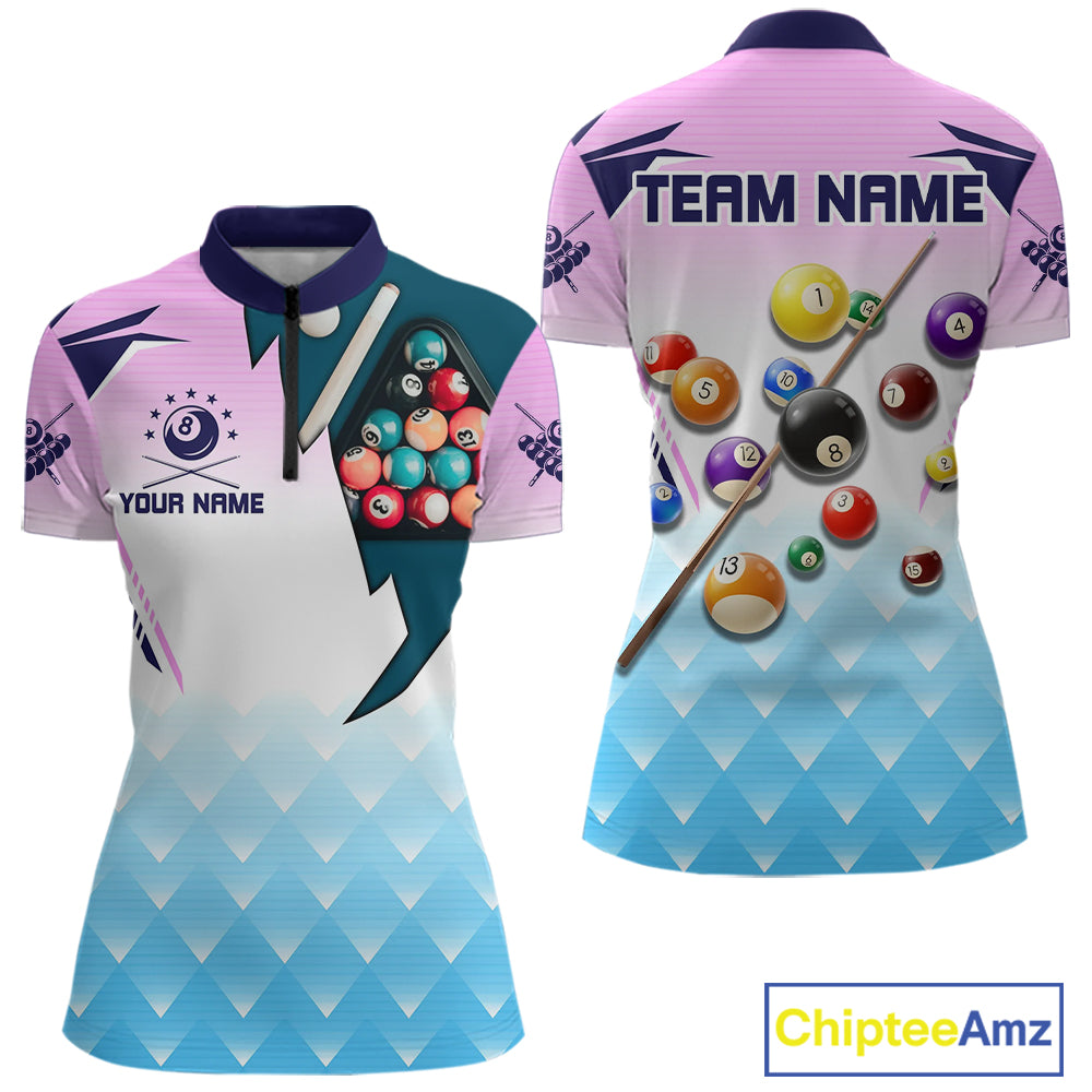 Personalized Colorful Billiard Shirt For Women Custom 8 Ball Pool Team Jersey Polo & 1/4 Zip TDM5471