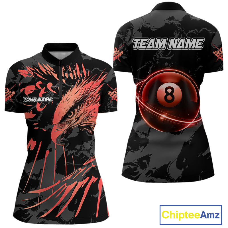 Custom Red And Black 8 Ball Pool Eagle Paint Billiard Shirts For Women Team League Billiard Jersey TDM5474