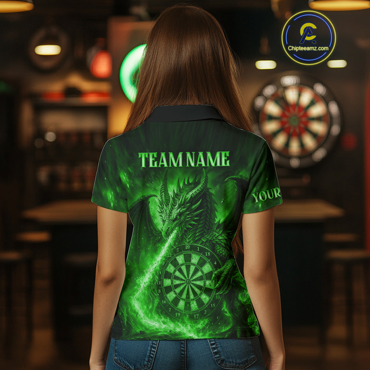 Green Flaming Dragon Darts Jersey For Women Custom Polo & Quarter Zip Darts League Team Shirt TDM5489