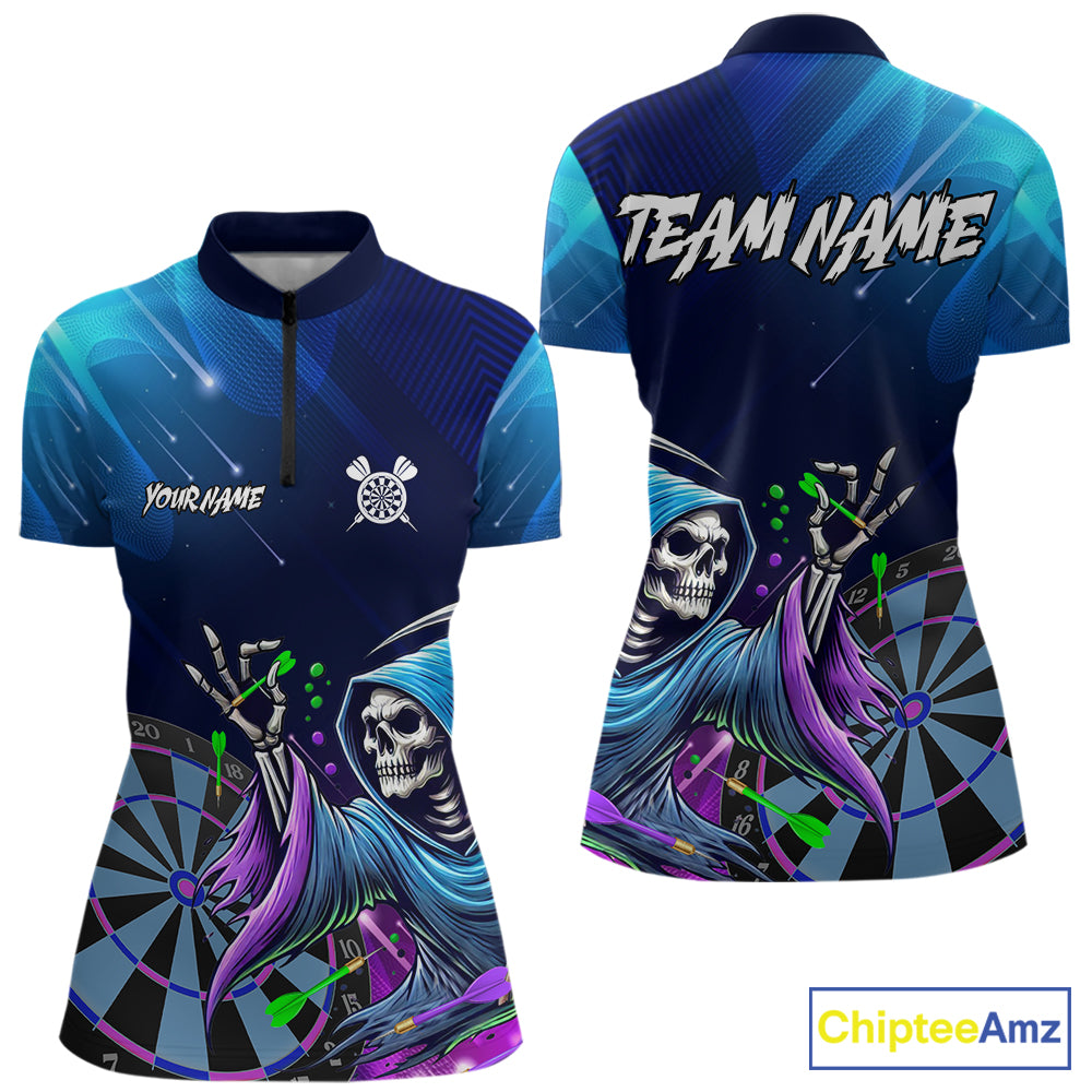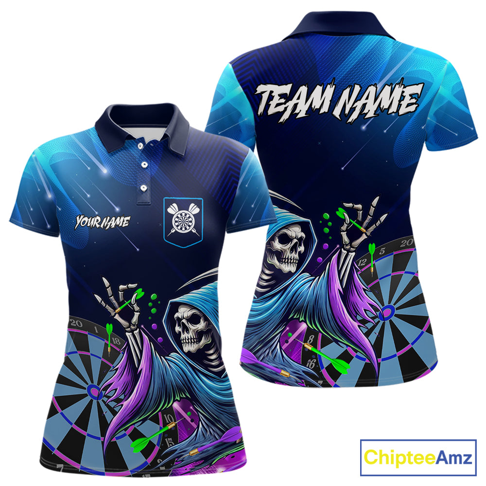 Funny Grim Reaper Blue Purple Galaxy Dart Shirts With Pocket Option For Women TDM5490