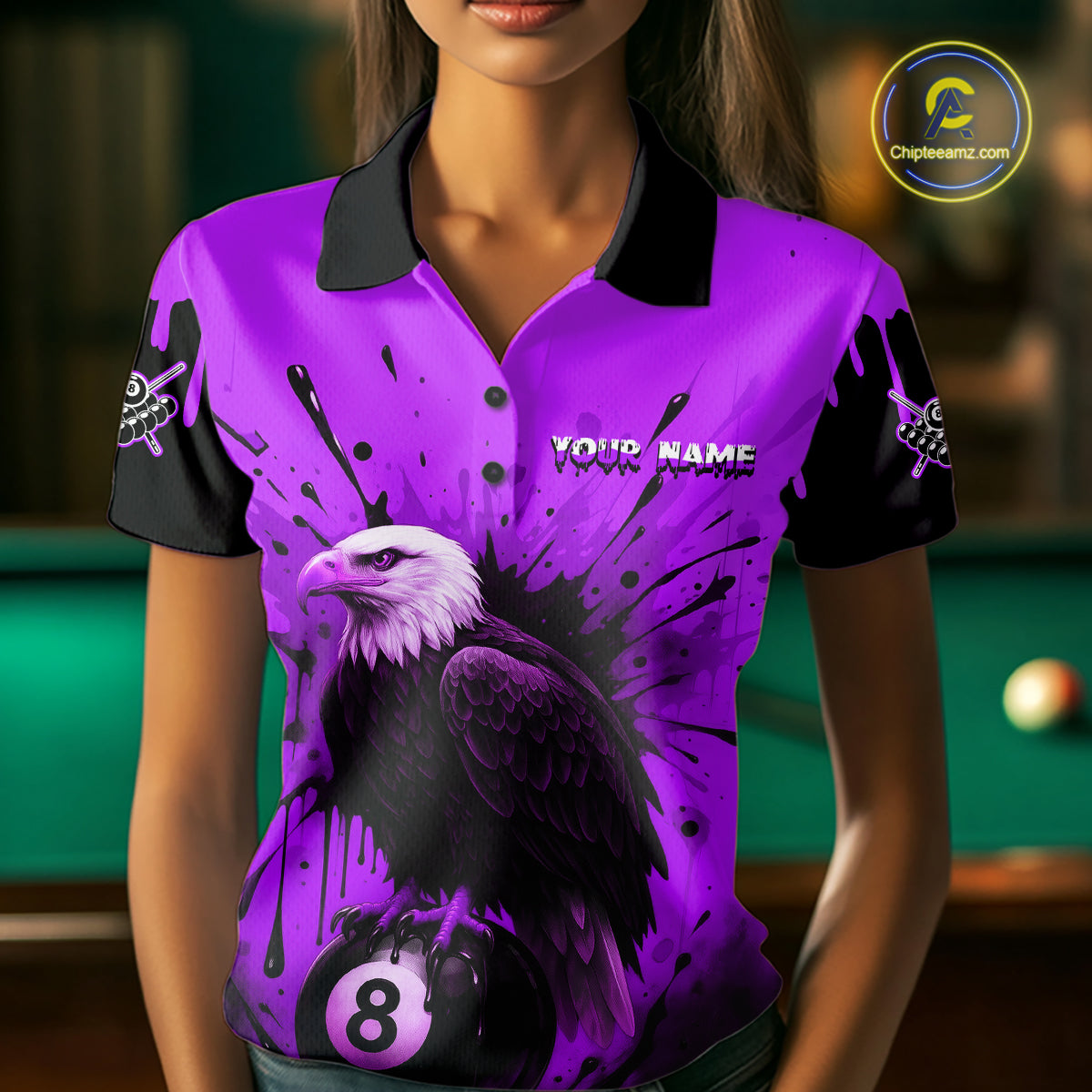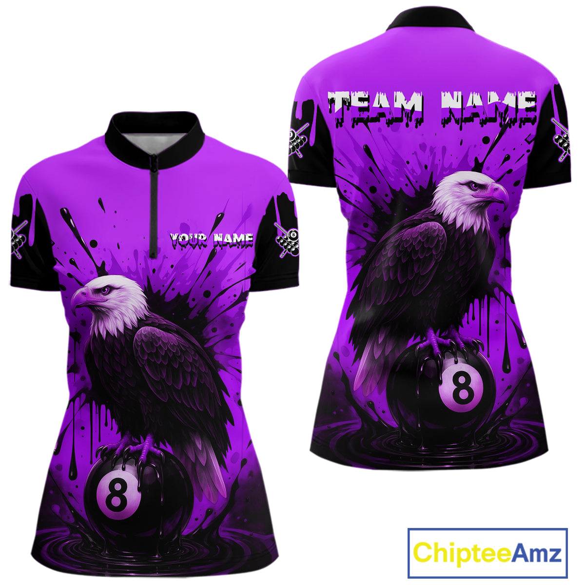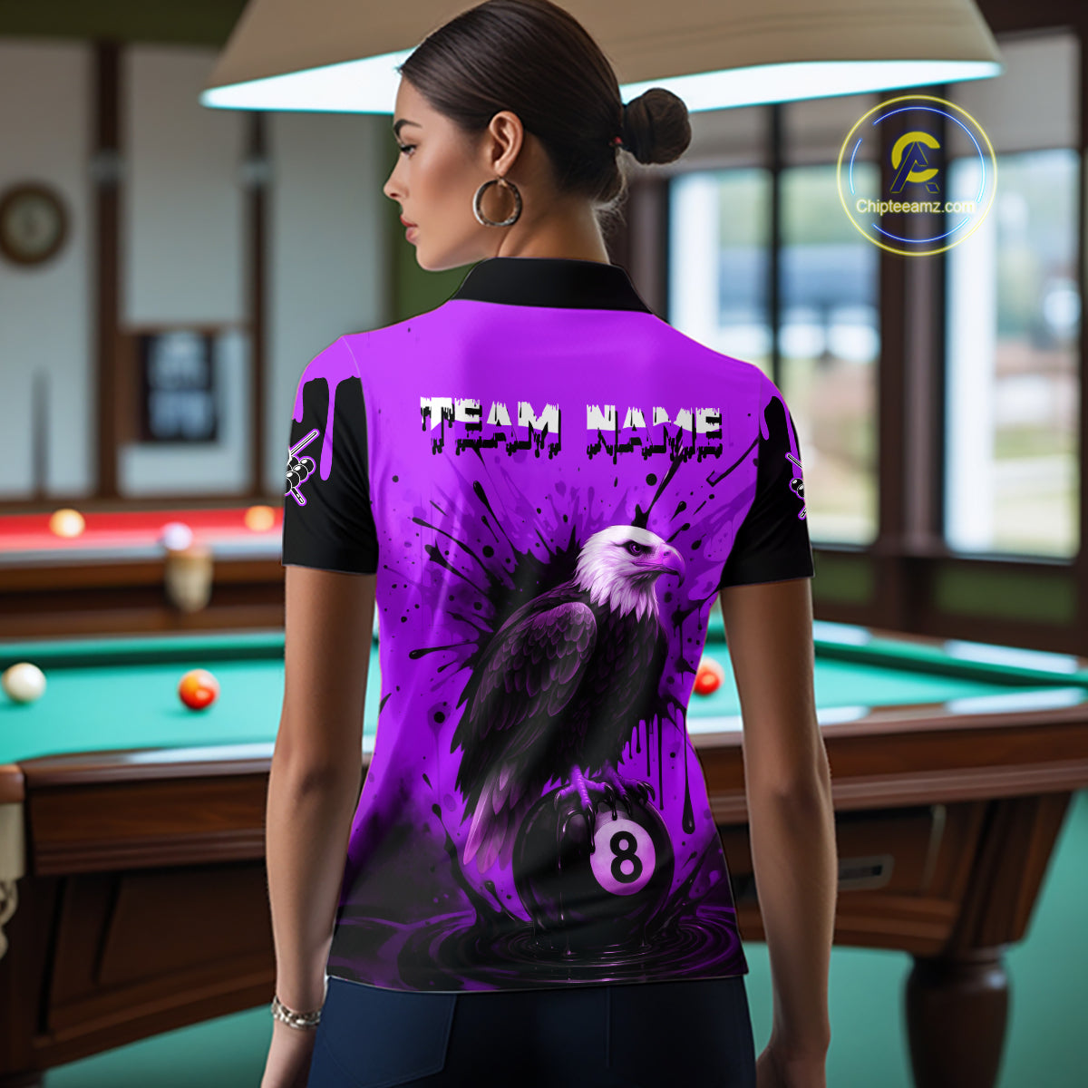 Purple 8 Ball Pool Eagle Paint Splash Billiard Shirt For Women Custom Billiard Jersey Polo & 1/4 Zip TDM5493