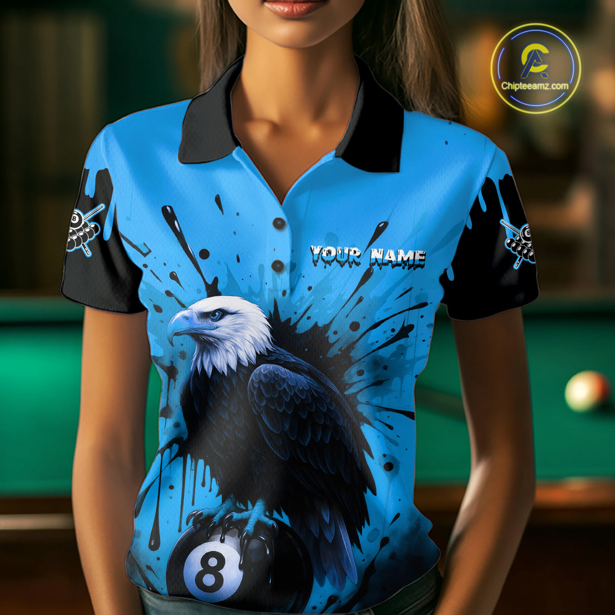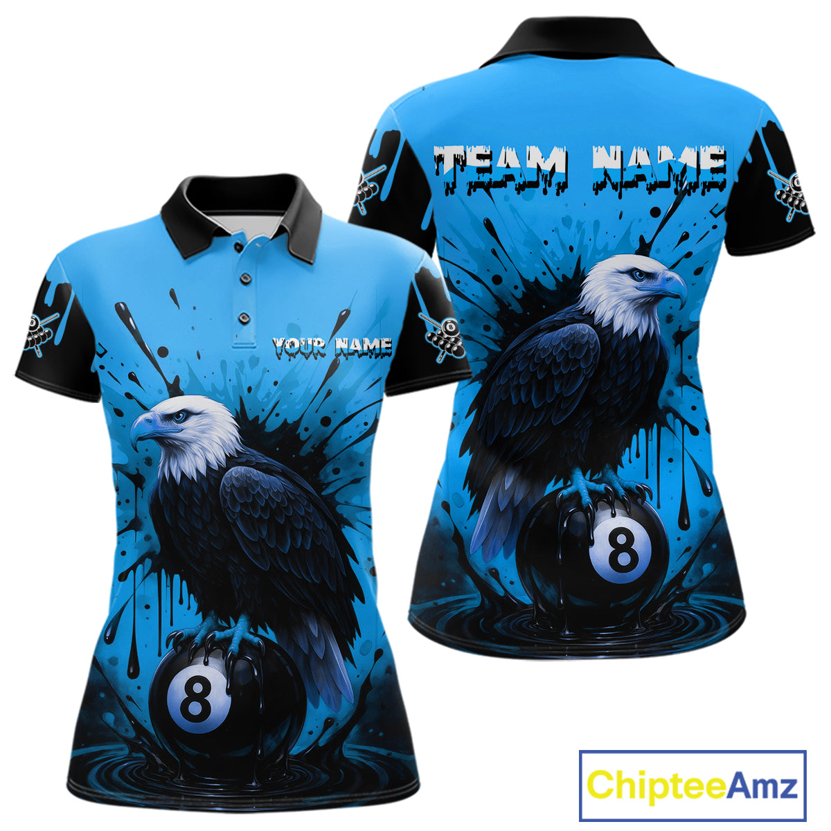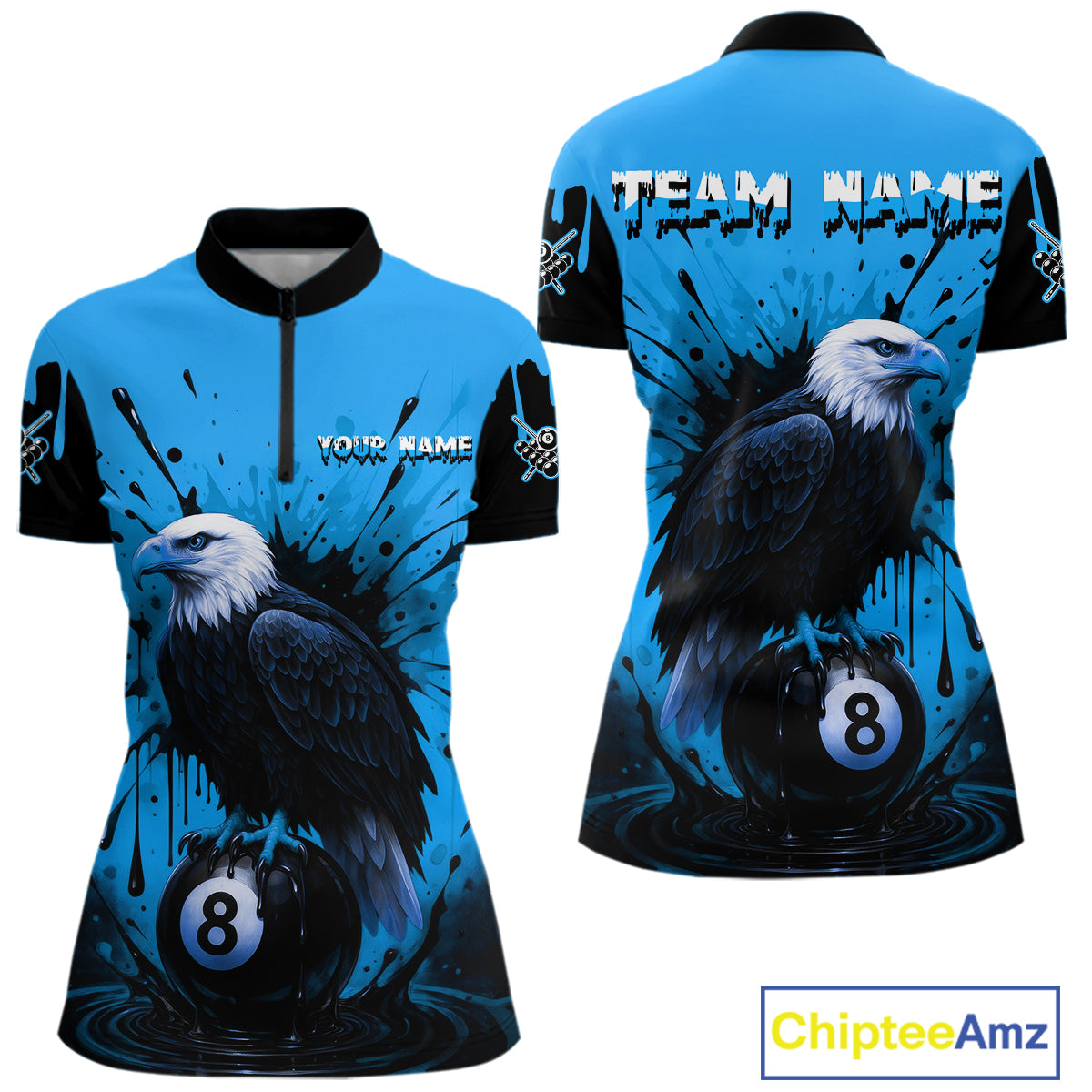 Blue 8 Ball Pool Eagle Paint Splash Billiard Shirt For Women Custom Billiard Jersey Polo & 1/4 Zip TDM5494