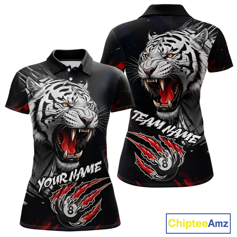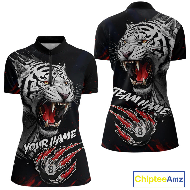 Personalized Tiger 8 Ball Pool Billiard Shirt For Women, Billiard Team Jersey Polo & 1/4 Zip |Red TDM5495