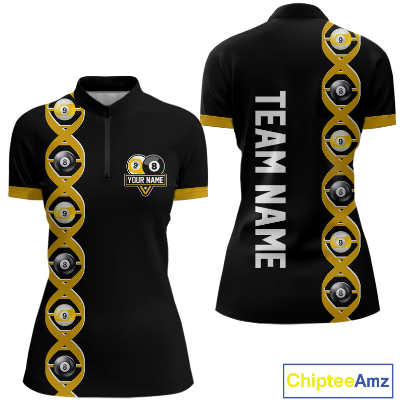 DNA Billiard 8 Ball & 9 Ball Shirts For Women Custom Funny Pool Jerseys Team Polo & 1/4 Zip |Yellow TDM5521